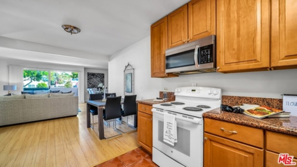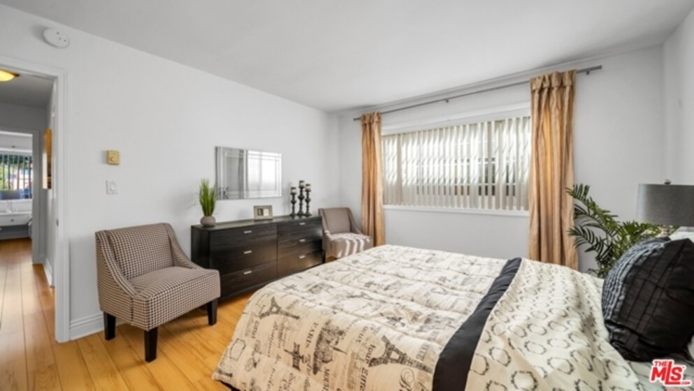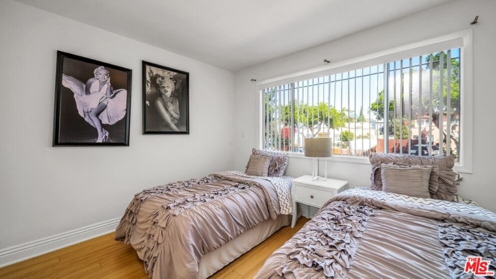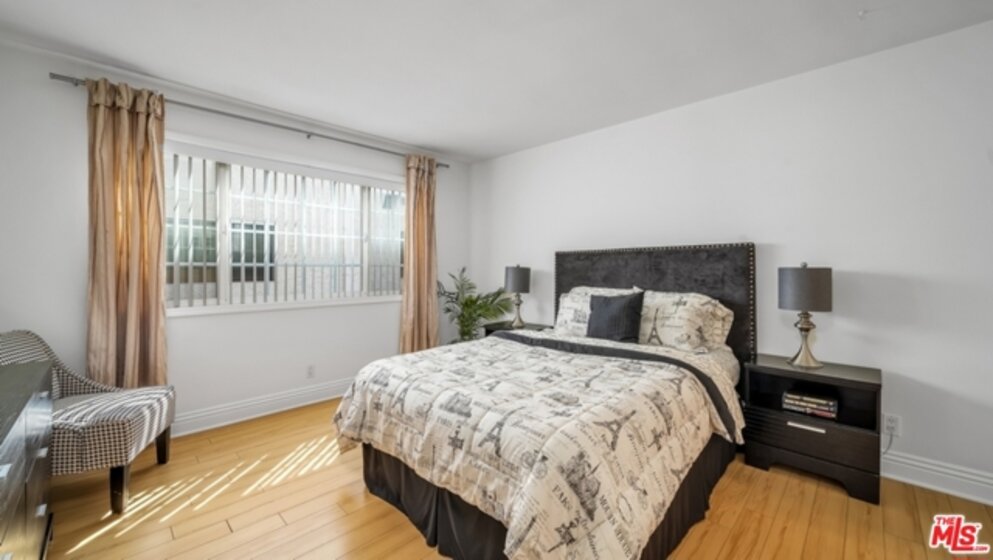 This bright and airy 1357 sq. ft. Santa Monica condo features 3 bedrooms and 2 full bathrooms. Located in a charming gated and secure courtyard complex, this unit features a full kitchen and wood flooring throughout. Features extra-wide sliding glass doors open to a quaint balcony, The sun-filled living area boasts plenty of natural lights. Spacious master bedroom with en-suite bathroom and walk-in closet with custom built-ins. This ground level unit has rare covered tandem parking spaces and two extra storage units. Located south of Wilshire and north of Santa Monica Blvd. close to many restaurants and shops and beaches.