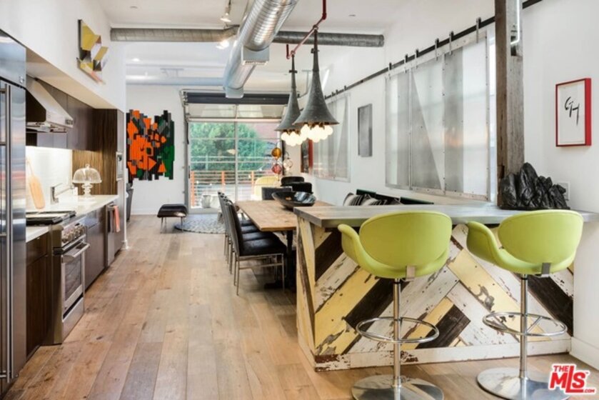 Featured in New York Magazine, this hip and sophisticated loft is located right in the heart of Main Street. This desirable west facing unit features an open floor plan with high ceilings, Bois Chamois hardwood floors, industrial roll top "garage" door that opens to a private balcony, a stunning master, and an additional enclosed room that can be utilized as a 2nd bedroom/office. Custom made fixtures and furniture (can be included) commissioned to local artists include bar & kitchen island made of reclaimed wood and sliding shades made of perforated metal. One-of-a-kind pieces throughout. Chef's kitchen include high end stainless steel appliances and zebra wood cabinetry. Comes with a spacious additional patio ideal for bicycles and surfboards. Laundry in the unit, plus two side-by-side parking spaces with extra storage in the gated garage. Prime Silicon Beach location...1 block to the beach and steps to the artisanal boutiques, cafes and restaurants on Rose, Abbot Kinney, and Main St.
