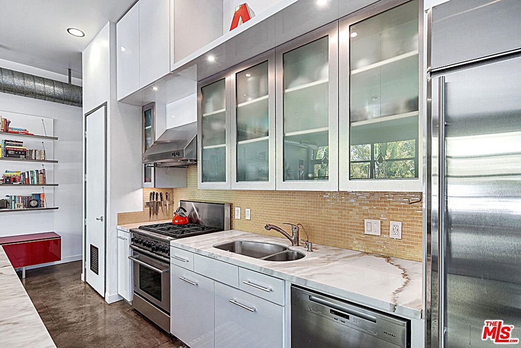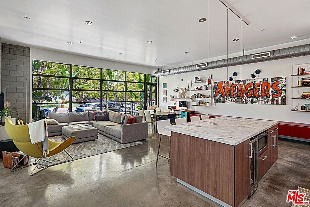 Just minutes from the beach in Santa Monica's Mid-City, this Pugh + Scarpa designed industrial-style Live/Work loft features an open floor plan with polished concrete floors, 11' ceilings and floor-to-ceiling windows that soak the space with natural light. The exceptional kitchen is upgraded with designer finishes, including high-end stainless steel appliances, large center island, marble countertops and custom maple cabinetry. The primary suite features two spacious closets and roll-up garage door that opens up to a central courtyard, while the ensuite bath offers a custom-tiled double shower and limestone clad dual vanity. Across the loft is an additional bedroom or work space with a murphy bed with built-in storage and access to the full guest bathroom. The home's great room opens to a generous front patio with plenty of space to hang your hammock, add a grill and dine or lounge al fresco. Zoned for Live/Work, the loft comes with two side-by-side parking spaces in a secured underground garage with guest and permit parking also available. Located just off Colorado Ave and near the Expo Line, all the best in Westside dining, amenities and the beach are within reach.