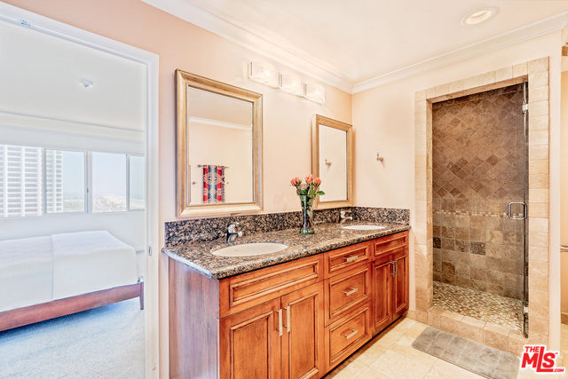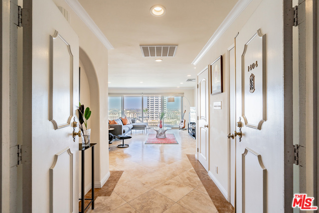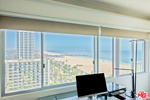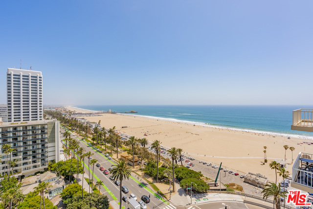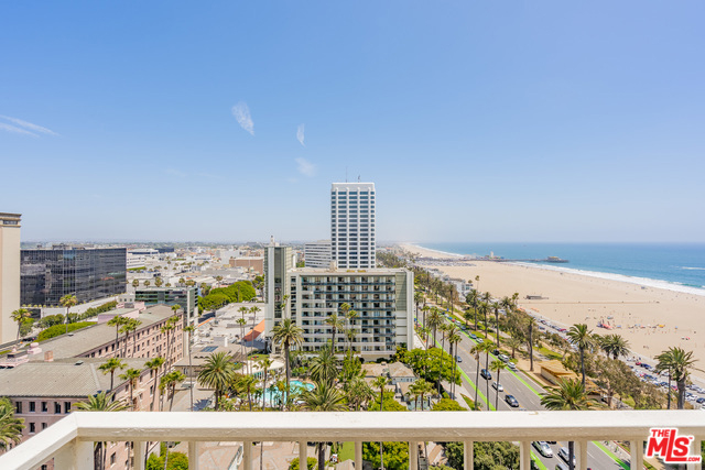 Step off the elevator and enter through double doors to this spectacular luxurious condominium. Formally a three bedroom converted to a very spacious two bedroom & 2 & 1/2 bath. On the 14th floor this condo has some of the most magnificent views Santa Monica has to offer & is the top floor of building besides penthouse. Views of the Santa Monica pier, the beach, to downtown LA & ocean views from every window down to the coastline of Venice. A large patio with awning to enjoy beverages & the world class view. It's like living on top of the world. This spacious & elegant condo is all on one floor plan, no stairs in the unit. The two master bedrooms are on opposite sides of the unit for privacy. There's secure underground parking & guest parking in the courtyard. This is one of the largest units in the entire building & will be an exceptional place to call home. HOA includes power, gas, water, internet, phone, parking, 24 hour doorman, guest parking, salt water pool, insurance & more