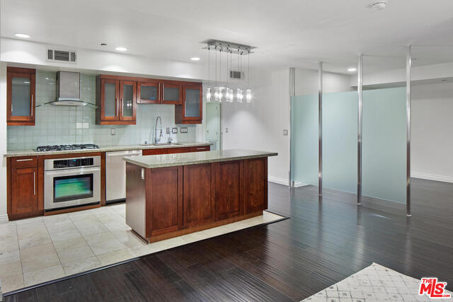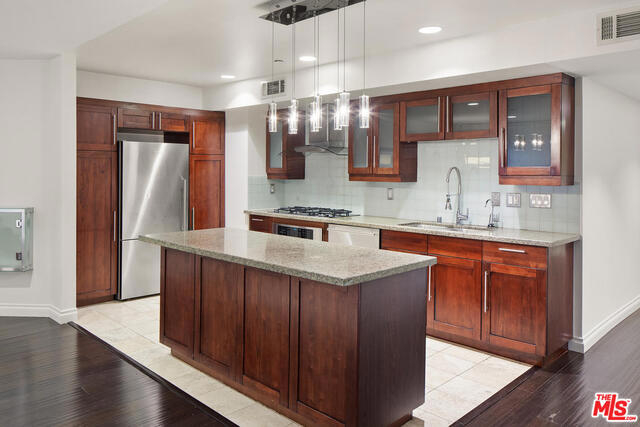 A stylish, contemporary luxury residence in Downtown Santa Monica. This condominium features an open floor plan with custom glass partition, walk-in closet, in-suite laundry, wood and travertine flooring plus a private balcony. The large gourmet kitchen with granite countertops and stainless steel appliances is perfect for entertaining. This newer modern building boasts a stylish lobby, secured entry and gated parking. Its prime location is close to all Santa Monica has to offer including the Third Street Promenade shops, Proper Hotel, trendy restaurants such as Cassia, Ester's Wine Bar and Native, as well as the Santa Monica Pier, parks, miles of beaches and the Metro station.