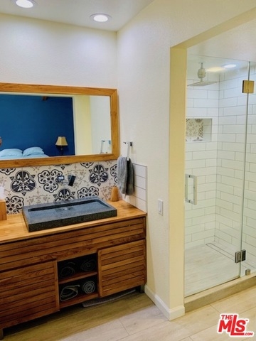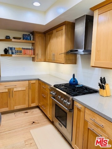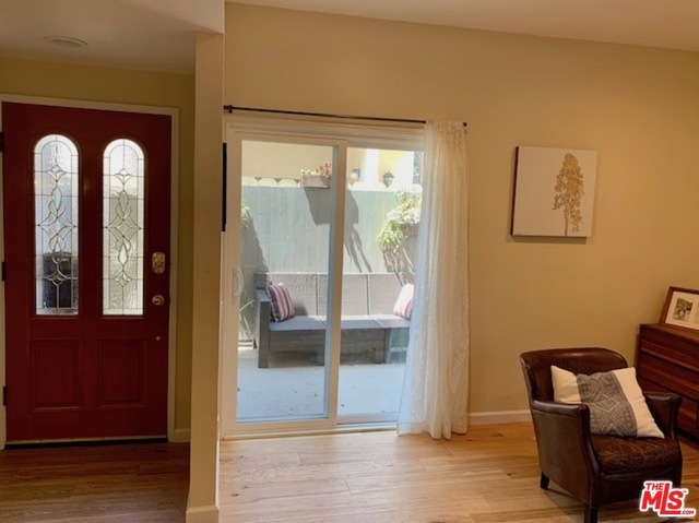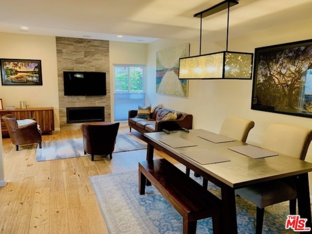 Nicely remodeled 3-bedroom end-unit townhome in Lincoln Middle School district. Features chef's kitchen with Thermador stove, built-in home entertainment system, hardwood floors downstairs, modern gas fireplace, central air/heat. Washer/dryer upstairs, master bedroom with high pitched ceiling, good closet space, including walk-in in master. Private patio, two side-by-side parking spaces and storage locker in garage. Walking distance to Bristol Farms, Erewhon, Douglas Park, Milo & Olive. Renovated and caringly maintained by who lives there.