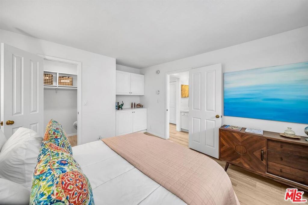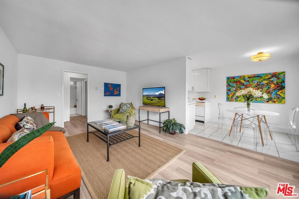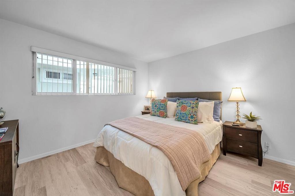 Bright and airy one-bedroom condo in the heart of Santa Monica. A "stone's throw" from Water Garden, Universal, Provident St. John Hospital and the Metro stop. Close to dining and shopping galore.Large bedroom with walk-in closet. Super clean lines in all white, tile kitchen with dining area. The balcony faces East, greeting the morning Sun, overlooking a small park and city lights in the background. Laundry room on each floor. A quick 23 block bike ride or Metro to the beach or 3rd St. Promenade for movies. New floors in the residence. Building completed a remodel last year. Gated, one car parking in the community garage. A true find.