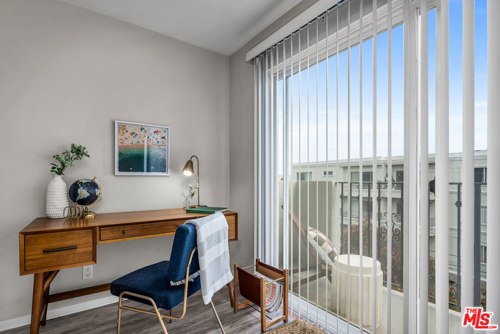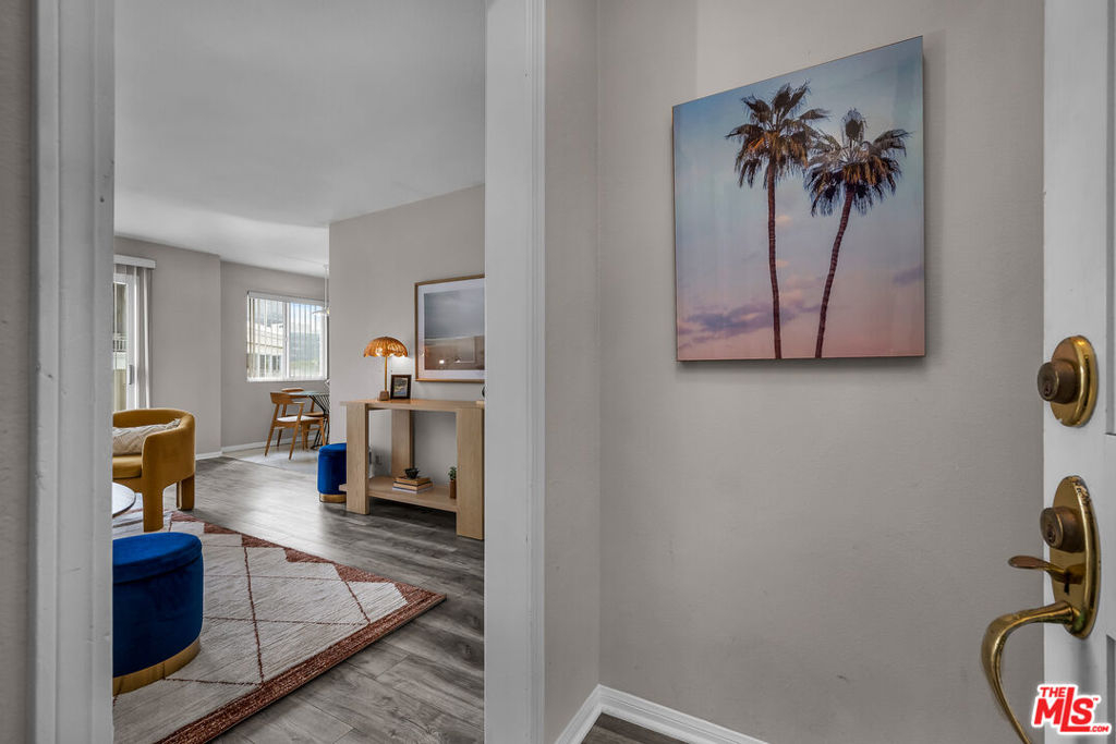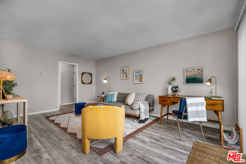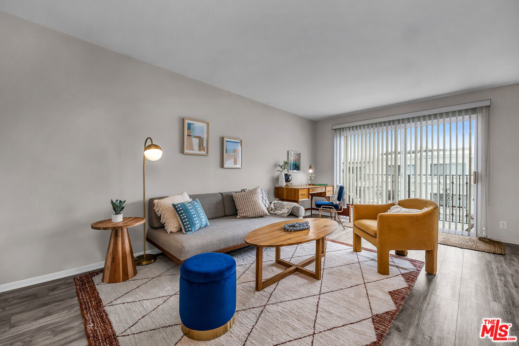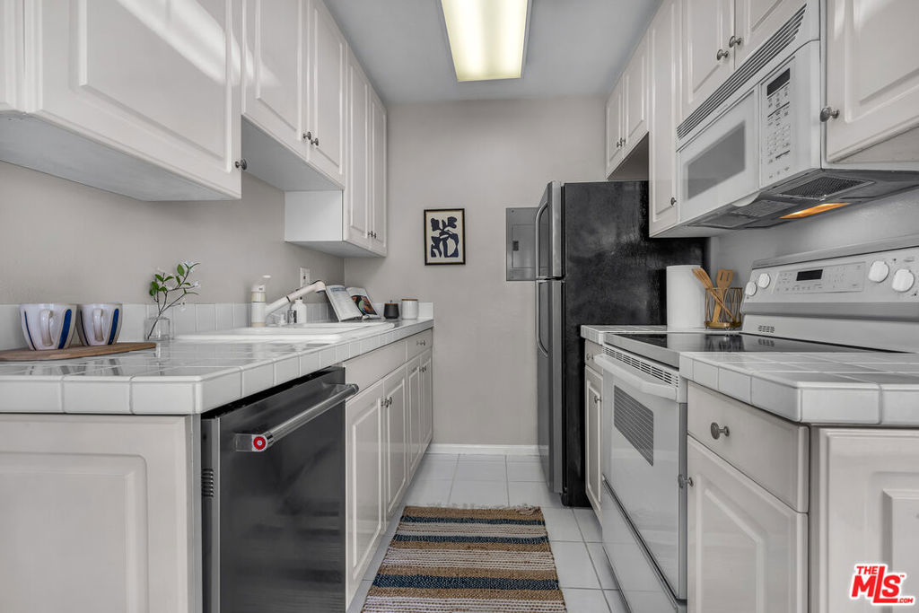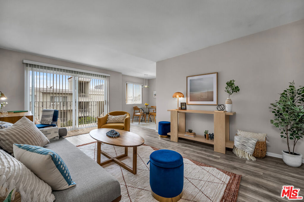 Welcome to this top floor, west facing, and lovely 1-bedroom, 1-bathroom condo located at 2308 Schader Dr, Santa Monica, CA. Situated in a low-rise building with ELEVATOR, this unit offers a retreat with 593 square feet of living space, ample closet space, built ins, loads of sunlight and privacy.Upon entering, you'll be greeted by the inviting luxury vinyl tile floors that lead you through the well-appointed living spaces with bright sunlight and ocean breezes. The kitchen with white tiled countertops and white cabinets is equipped with all the essential appliances, including a stainless steel dishwasher, range, microwave and stainless steel refrigerator.The dining alcove adjacent to the kitchen with tile flooring provides a perfect spot for enjoying meals or entertaining guests. The bedroom is of ample size with large walk in closet and a built in cabinet area for extra storage. The bathroom has tub over shower with new enclosed glass shower door and separate vanity with white tiled countertop area with sink and under sink white cabinetry.Step out onto the private west facing balcony and take in the views while enjoying the fresh coastal breeze. The central heating ensures comfort year-round, while the building amenities include a common media/recreation room for leisure and entertainment.For added convenience, the building features an elevator, assigned parking, and a gated garage. Security is also a top priority with electric gates, security gates, and an intercom system providing peace of mind. Residents will appreciate the building's laundry facilities on each floor of the building, making chores a breeze. Buyer and Buyer's agent to verify all square footage and unit dimensions.Located in a desirable Santa Monica location close to St. John's hospital, UCLA hospital, The Water Garden, the 10 fwy, and many restaurants, grocery stores, this condo offers a fantastic opportunity for comfortable and convenient living.No lockbox onsite and Listing Agent must be present for all showings. Don't miss out on making this delightful condo your new home!