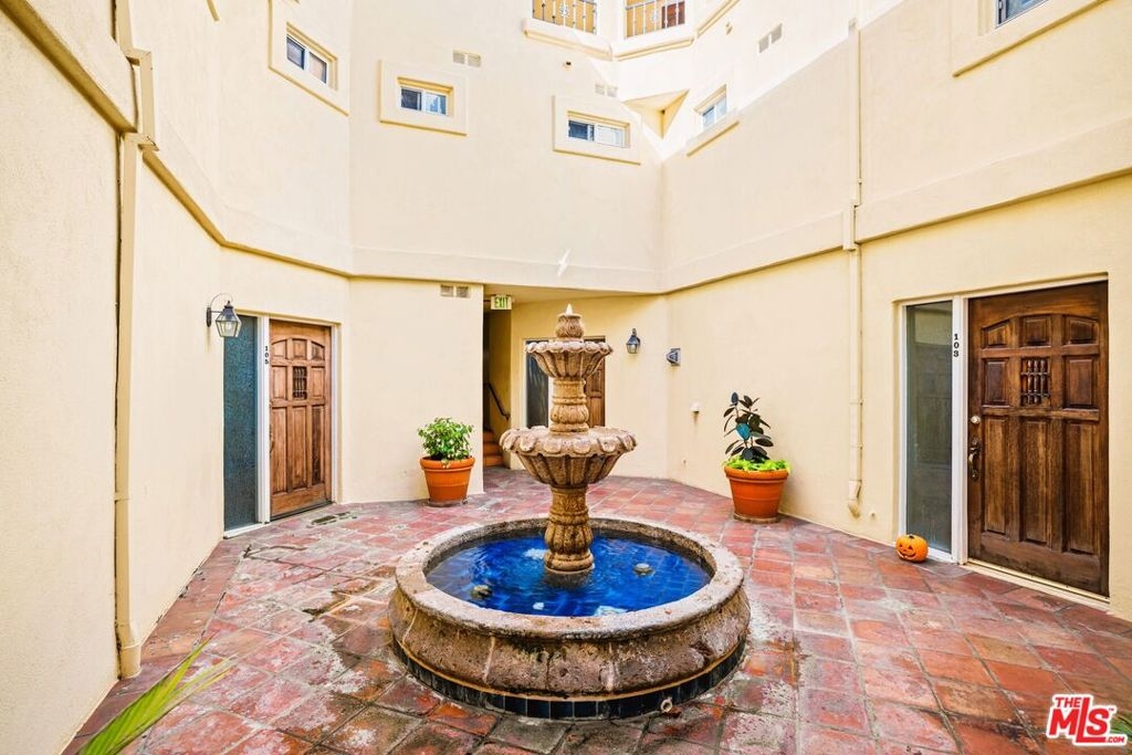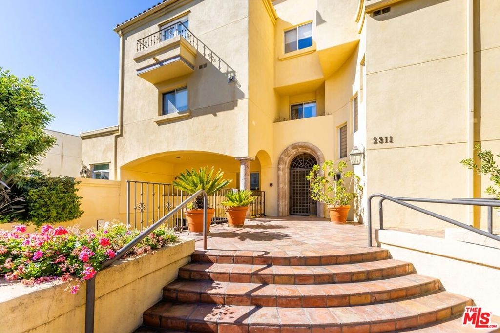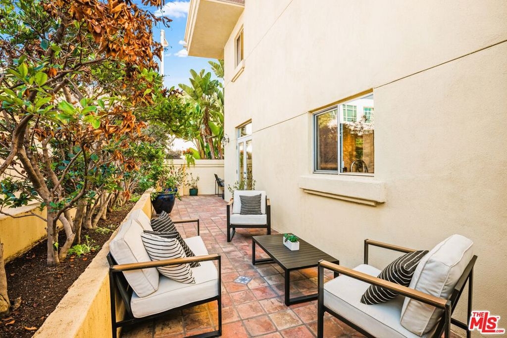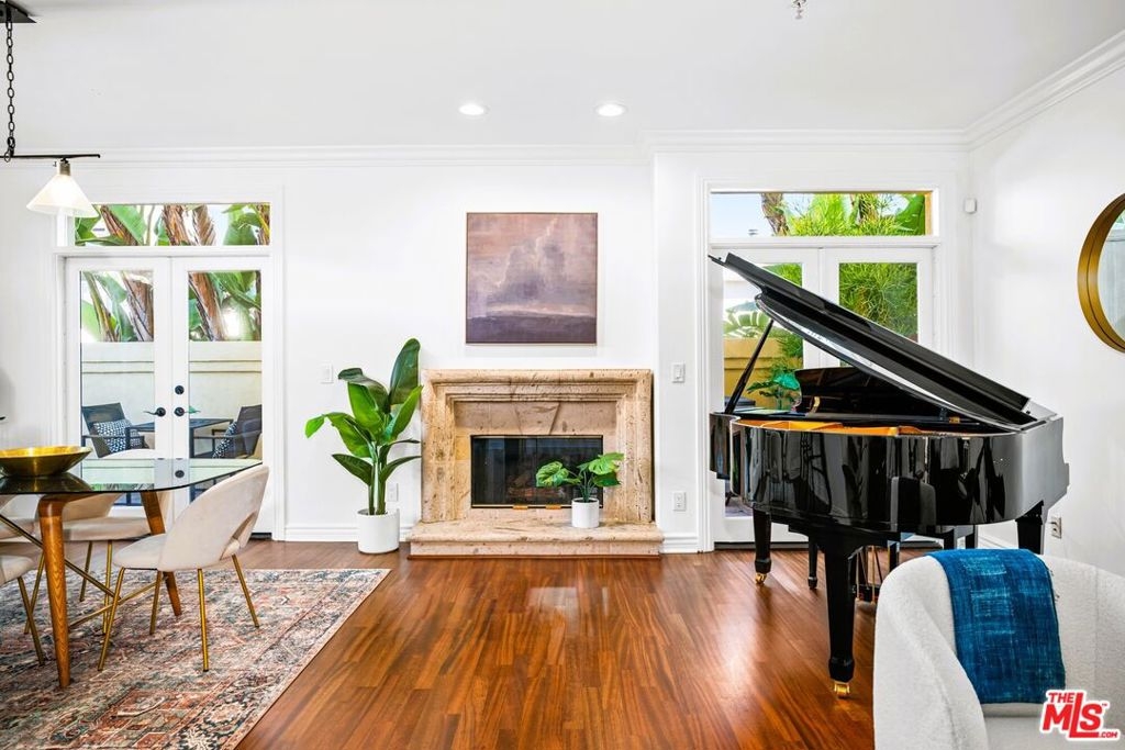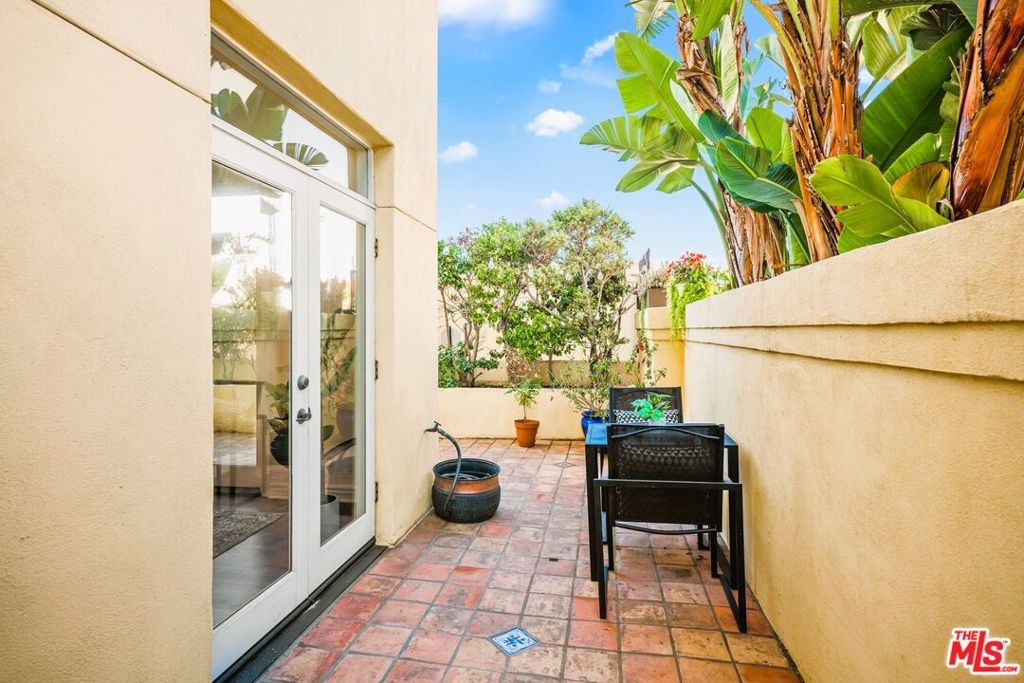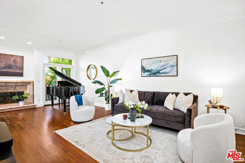 The one you have been searching for! This beautiful townhome accentuates California casual sophistication, showcasing gleaming wood floors, soaring high ceilings, impressive crown molding, and a generous well throughout the floor plan. As you enter, you are welcomed by an ample foyer that opens to a sizeable main living space with views of the notable dining area accented by a stylish fireplace and three sets of brilliant floor-to-ceiling French Doors that bathe the space in natural light. From the dining room, the pass-through breakfast bar opens to a light and bright, well-appointed kitchen with considerable storage space, custom pull-out drawers, and stainless-steel appliances, ideal for entertaining and sure to please the chef in the family. Outdoor space abounds, so make your way to the French Doors and outside to the immense L-shaped wrap-around tiled patio with space for lounging and relaxing, dining, grilling, and even container gardening. Utility space with a full-sized stackable washer and dryer and a powder room completes the main level. On the second level, you will find a generous primary bedroom adorned with a stately fireplace and a petite private balcony, creating your own tranquil retreat featuring a dazzling updated ensuite bathroom with a bathtub, separate shower, and mirrored closet doors. A comfortable second bedroom with an appealing ensuite bathroom offers a walk-in closet and a shower with striking stone flooring. This end-unit property is perfectly situated in a well-managed boutique Mediterranean-styled building that is highlighted by lush tropical landscaping and a welcoming courtyard with a fountain. This townhome has central HVAC and a brand-new AC unit. The HOA recently replaced the roof, and HOA dues include earthquake insurance. Property secured requiring keyed access to access parking, common areas, and elevators. Excellent location just South of Santa Monica Boulevard, a quick jaunt to Downtown Santa Monica, the Beaches, Santa Monica Pier, Main Street, Third Street Promenade, St John's Hospital,and West LA. And more.