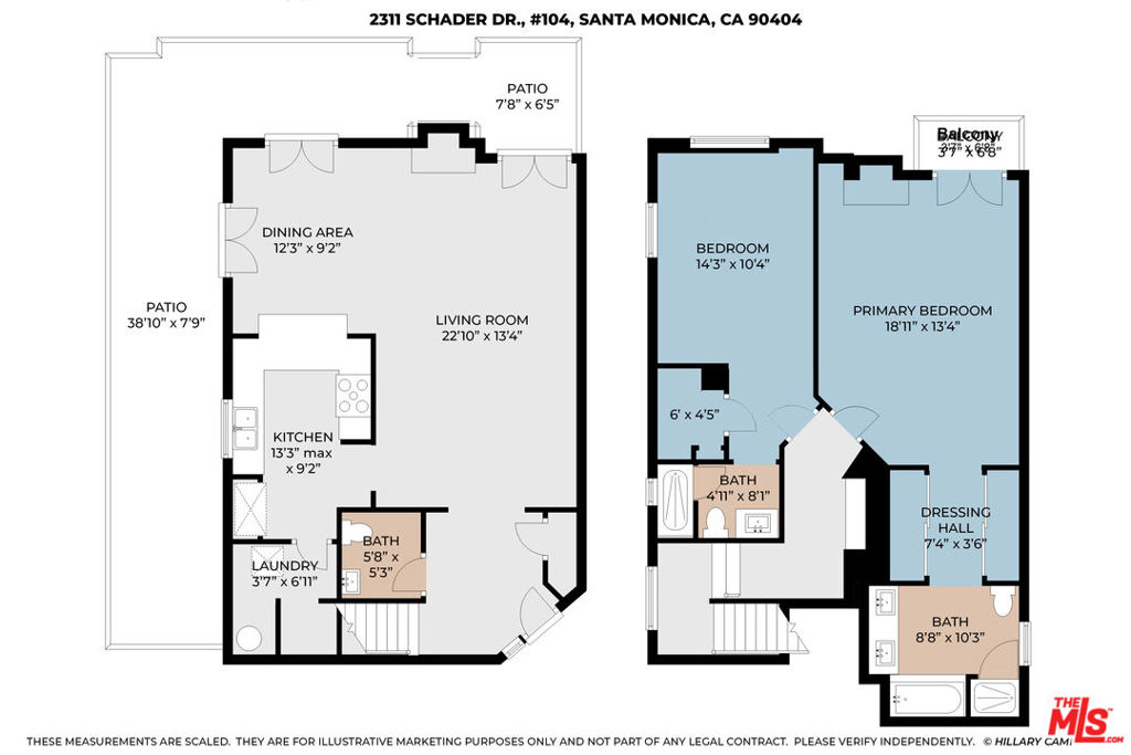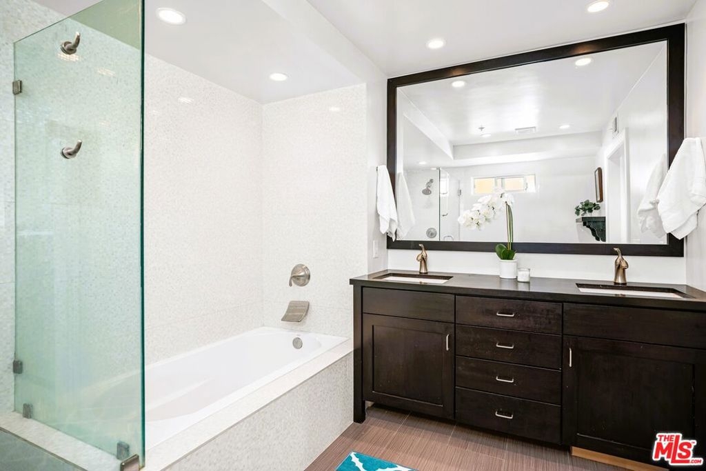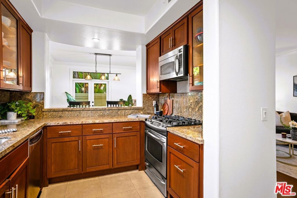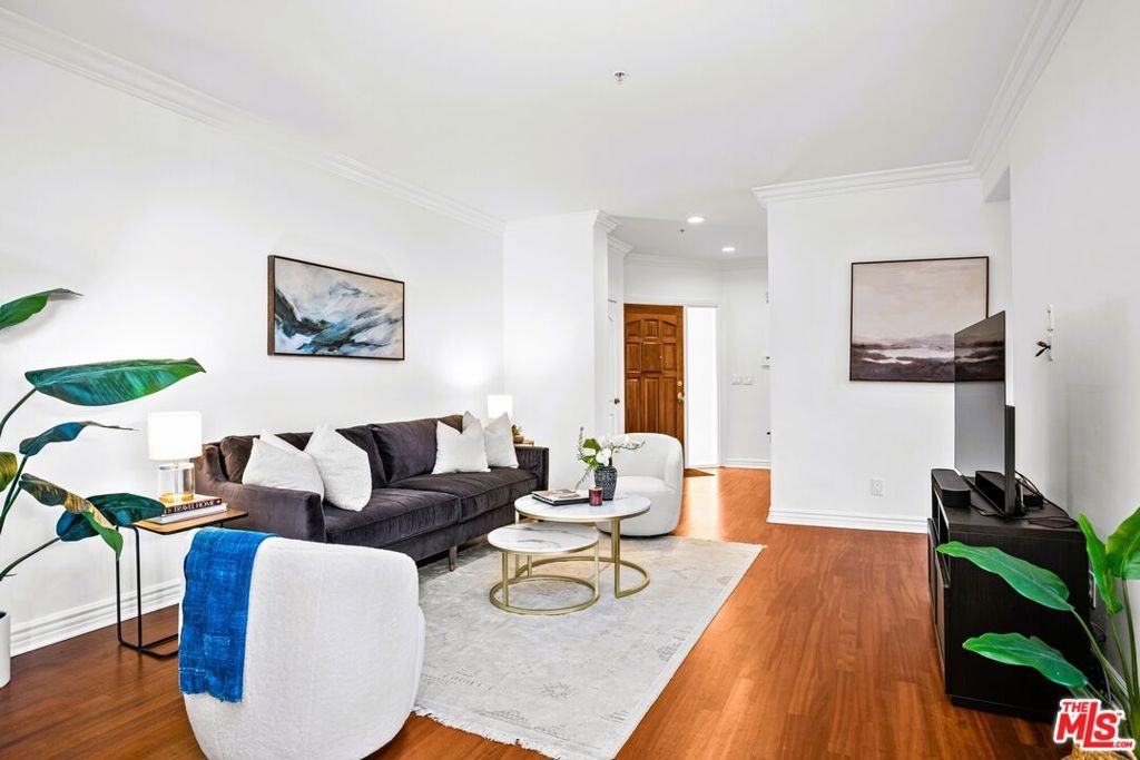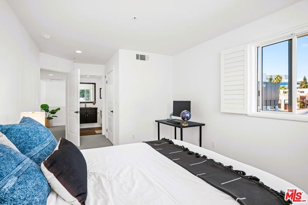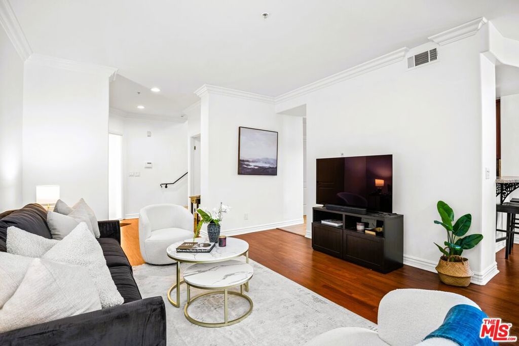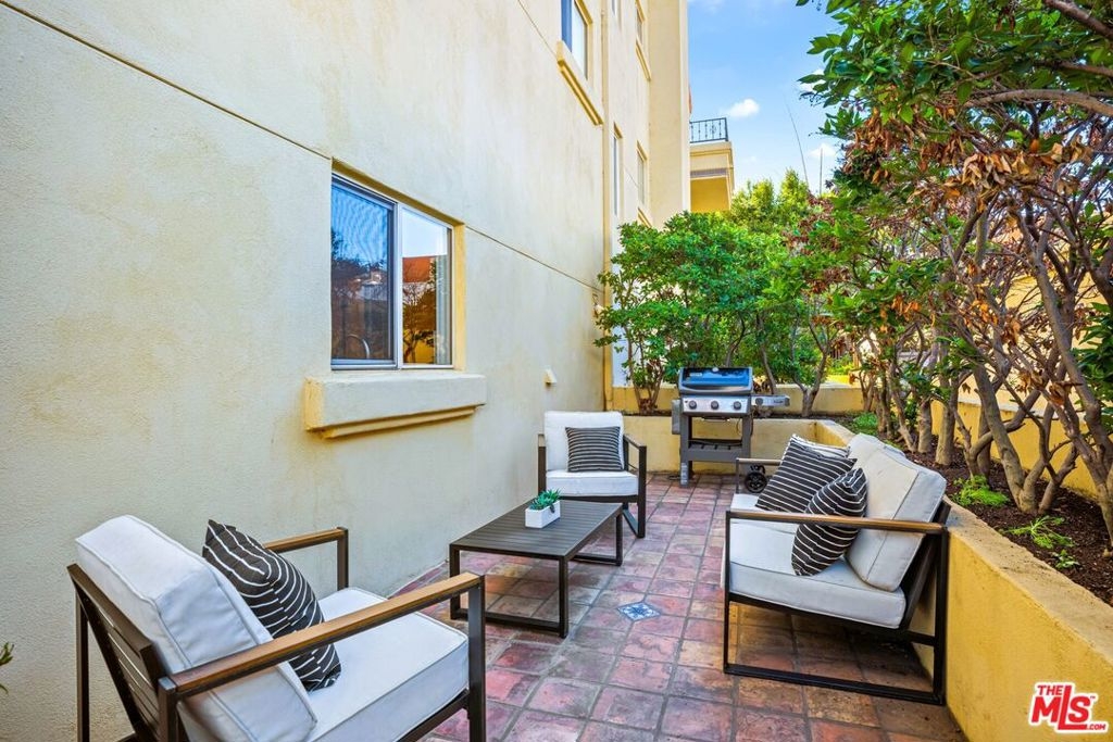 The one you have been searching for! This beautiful townhome accentuates California casual sophistication, showcasing gleaming wood floors, soaring high ceilings, impressive crown molding, and a generous well throughout the floor plan. As you enter, you are welcomed by an ample foyer that opens to a sizeable main living space with views of the notable dining area accented by a stylish fireplace and three sets of brilliant floor-to-ceiling French Doors that bathe the space in natural light. From the dining room, the pass-through breakfast bar opens to a light and bright, well-appointed kitchen with considerable storage space, custom pull-out drawers, and stainless-steel appliances, ideal for entertaining and sure to please the chef in the family. Outdoor space abounds, so make your way to the French Doors and outside to the immense L-shaped wrap-around tiled patio with space for lounging and relaxing, dining, grilling, and even container gardening. Utility space with a full-sized stackable washer and dryer and a powder room completes the main level. On the second level, you will find a generous primary bedroom adorned with a stately fireplace and a petite private balcony, creating your own tranquil retreat featuring a dazzling updated ensuite bathroom with a bathtub, separate shower, and mirrored closet doors. A comfortable second bedroom with an appealing ensuite bathroom offers a walk-in closet and a shower with striking stone flooring. This end-unit property is perfectly situated in a well-managed boutique Mediterranean-styled building that is highlighted by lush tropical landscaping and a welcoming courtyard with a fountain. This townhome has central HVAC and a brand-new AC unit. The HOA recently replaced the roof, and HOA dues include earthquake insurance. Property secured requiring keyed access to access parking, common areas, and elevators. Excellent location just South of Santa Monica Boulevard, a quick jaunt to Downtown Santa Monica, the Beaches, Santa Monica Pier, Main Street, Third Street Promenade, St John's Hospital,and West LA. And more.