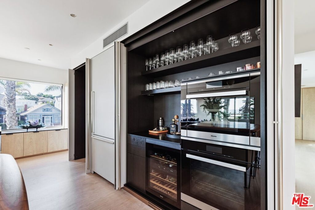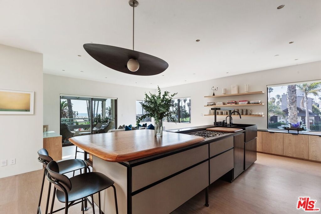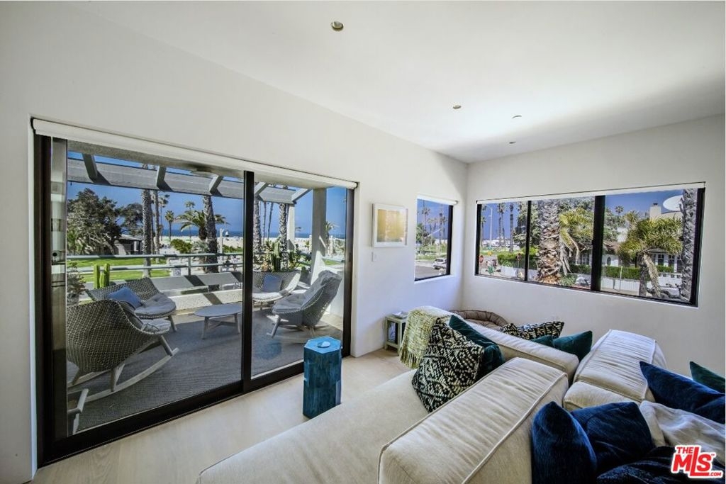 Unique opportunity to acquire one of the premier beachfront townhomes in Los Angeles. The corner townhouse, which features head-on ocean views from every key room, recently went through a three-year renovation to take it to Architectural Digest quality. The home has round-the-clock security, a direct access garage, a private grass yard, multiple balconies, and access to all of the amenities offered by the Sea Colony. As you approach, a romantic garden leads to a custom fitted keyless front door. The entire home is fitted with Dinesen wood flooring from Denmark, and the stunning foyer features a custom designed Ochre chandelier and a floating staircase. The first level offers three large bedrooms, each with custom resort-type baths with incredible custom stonework, showers with slab stone floors and hidden drain design, and wet sinks. The second floor is home to the main living areas. The sun-drenched living room has a wood burning fireplace and views up the coast. The dining room overlooks a living air-plant wall and is lit with custom Ochre lighting, a stunning powder room designed with Italian mother-of-pearl and marble finishes. The centerpiece of the living area is a complete Boffi kitchen imported from Italy. Beautiful paneled doors close to hide the kitchen and pantry, volcanic stone countertops, a custom Boffi sink, a mahogany wood pull-out slab, and Miele appliances, including a steam chef's oven. The primary suite has beautiful ocean views, serene fireplace, a walk-in closet, plus spa bathroom outfitted with Boffi fixtures. A cozy attached den could serve as a media room or office. In addition to the above listed features, the house has specially designed non-rimmed ceiling lights, new soundproof glass windows and doors, Lutron lighting, and electronic shades and Sonos sound. This is truly a no-expense-spared renovation blocks from everything Los Angeles beach life has to offer.