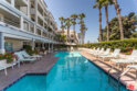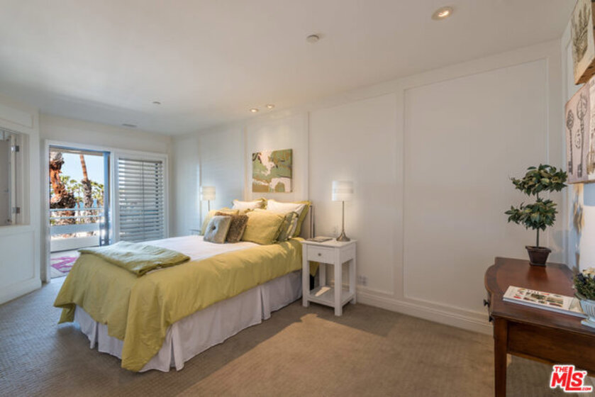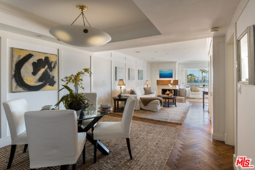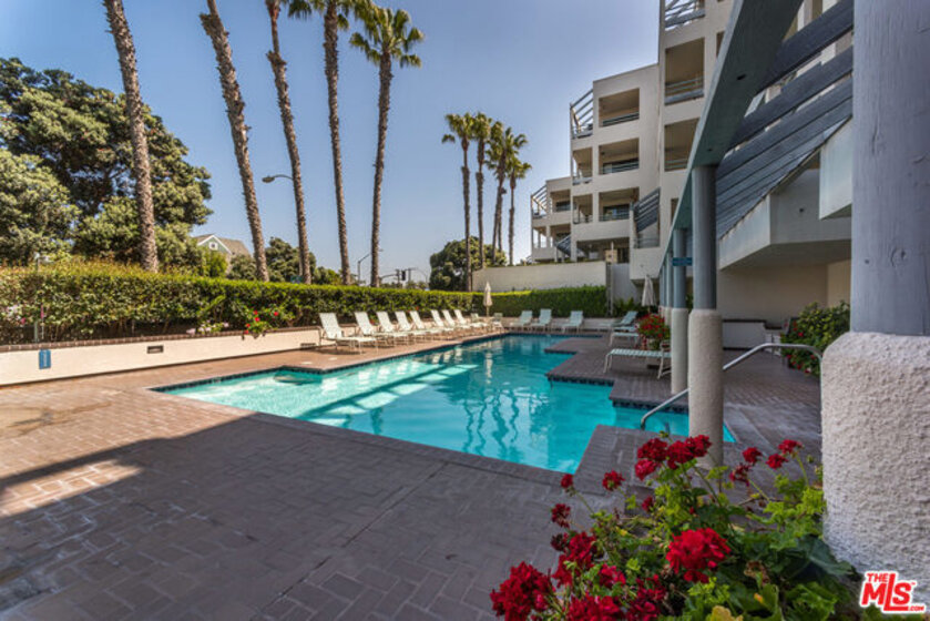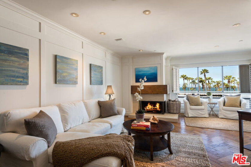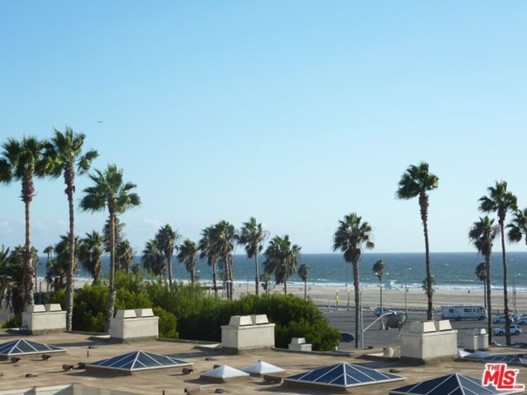 Stunning head-on ocean views from this upper level west-facing 1 bed, 1.5 bath condo. Remodeled kitchen with granite counter tops, sub zero refrigerator. Spacious, open dining and living areas. Living Room has fireplace and sliding doors to balcony. Spa like master bathroom has steam shower and large spa tub. Master bedroom with large walk-in closet, dressing area and access to balcony. Balcony offers space for outdoor dining, with beautiful sunsets and beach views. Plantation shutters. Laundry in unit. 24 hour security. 2 car side-by-side parking conveniently located near elevator to unit. Ample guest parking. Beautiful heated pool, newly remodeled gym, 3 spas, sauna, meeting room. Luxury resort style living! Separate secured private storage locker for bicycles, surfboards etc. The perfect location for Santa Monica beach, bike path, Main Street shopping and dining, Sunday Farmer's Market.