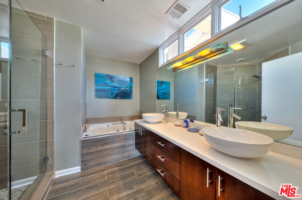 Do not miss this opportunity to own one of the most sought after penthouses in Ocean Park, Santa Monica. This Sea View Collection unit has panoramic views of the ocean & Santa Monica mountains from just about everywhere. The 2BR /2.5 BA unit has soaring ceilings & tons of natural light. Features separate office/den with ocean views & direct access to the balcony, making it an amazing space to work from home. Enjoy morning coffee on the deck, or evening cocktails w/ friends while admiring the sunset. Updated bathrooms, hardwood floors, 2 fireplaces, spacious chefs kitchen, & spa tub in the master bath are just a few of the details. Just two blocks to popular Main Street restaurants, shops & cafes, short walk or bike to the beach, Santa Monica Pier, Venice Beach, Sunday farmer's market, this unit gives you access to everything and ability to safely get away from it all at the same time. Only 2 other units on Penthouse level, so very private. See pvt remarks for showing requests.