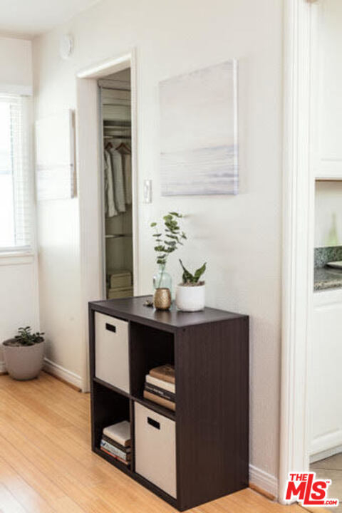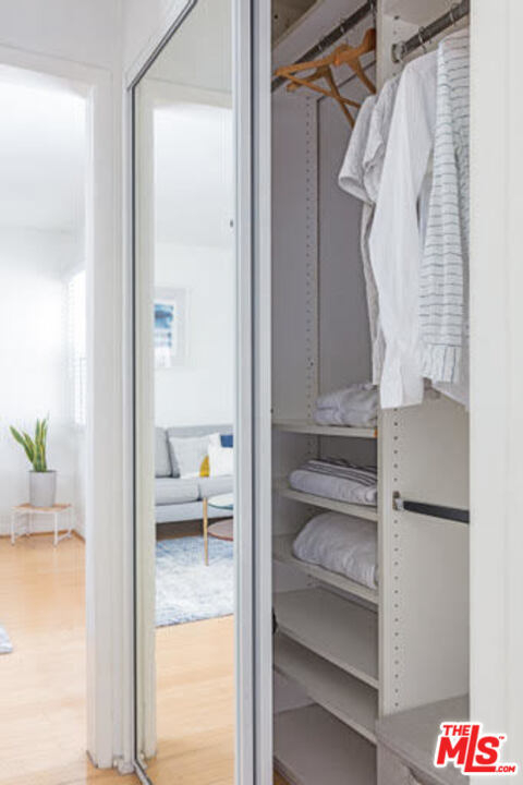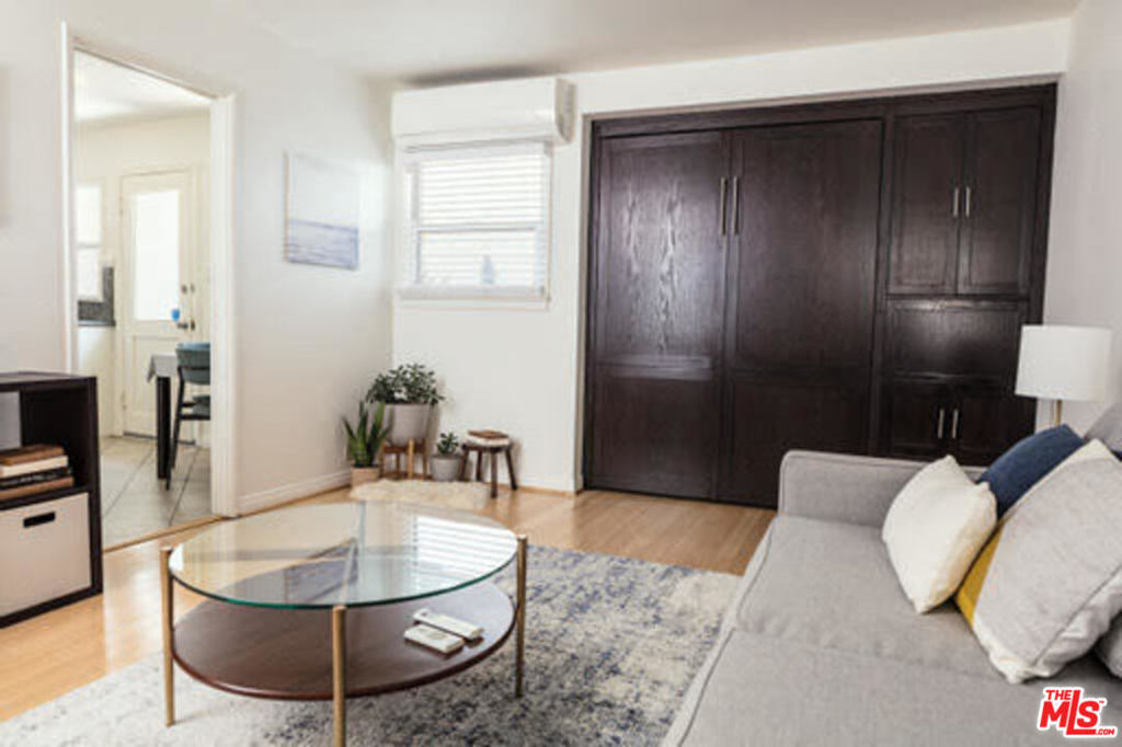 Enjoy peaceful indoor & outdoor living in this cottage-style garden studio, with NO neighbors above or below, tucked neatly into the quiet, walkable neighborhood of Santa Monica's University Streets. Living space is maximized with a custom-made Murphy bed, built-in office, custom closets & private back patio. Waiting just outside your door is a semi-private lush garden courtyard. For your convenience there is an assigned-garage-parking space and on-site laundry. The unit boasts a full eat-in kitchen, energy efficient ductless mini-split air conditioning/heating unit, bamboo & tile flooring & a full tub/shower with subway tile. The HOA dues are low & the condo is not subject to rent control. This unit offers proximity to hospitals, light rail station, shopping & bike paths that lead to the beach & the famous Santa Monica Pier. Come see yourself getting comfortable in this slice of Santa Monica living & all that this lovely city by the sea has to offer. Masks required on all showings.