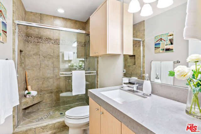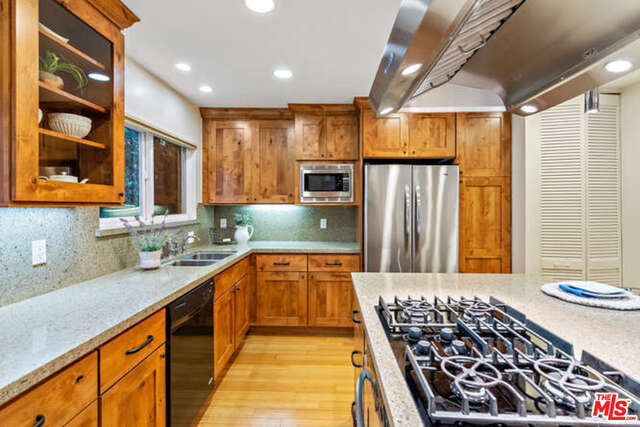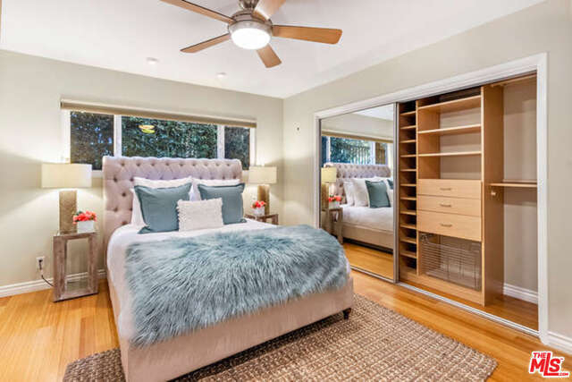 Welcome to your private oasis entering through a secure & inviting courtyard. This lovely 2bd, 2bth single level condo is located in the coveted college streets. Featuring an exquisite chef's kitchen w/ gorgeous Ceasar stone Island, range hood, designer lighting, custom cabinets, stainless steel appliances & a huge pantry/storage closet. Topping off this dream kitchen is a convenient upright lndry & built-in ofc desk. It flows nicely to the living rm that houses a classy fpl w/ mantle, sleekly designed cabinets & ample recess lighting leading to a private terrace. Bamboo wd flrs throughout & all double paned windows are equipped w/ up/dwn Hunter Douglas blinds. Both good size bdrms feature modern ceiling fans & large custom closets…1 being en-suite. The bathrooms are tastefully remodeled w/ Grohe fixtures & Ceasar stone. Close by are Sawtelle & Santa Monica Restaurants, Whole foods, Bristol Farms, Erewhon, the Metro station & the Ocean. Great location and school district.