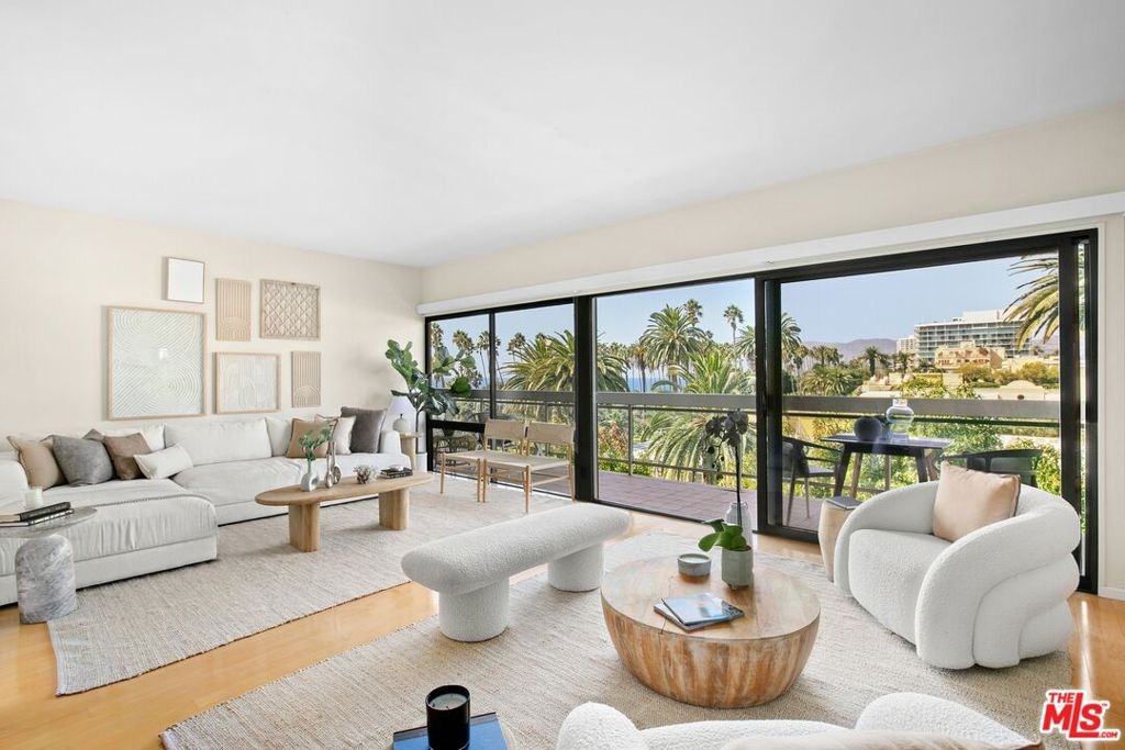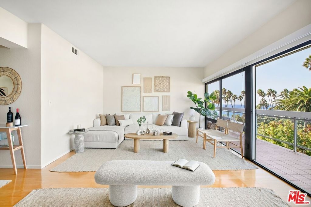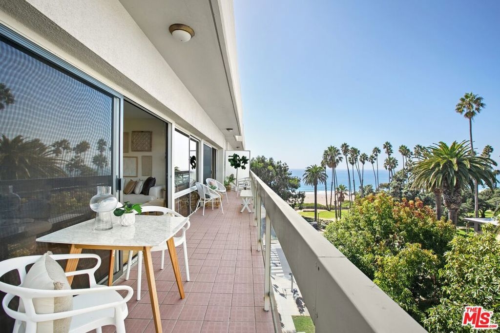Experience the spectacular beauty of the ocean and northern vistas from this remarkable Penthouse featuring 2 large bedrooms, 2 1/2 bathrooms and 2 breezy balconies. This is a unique opportunity to own a highly desirable home available for the first time in over four decades. From the expansive living room you can relish the serene panoramas and ocean's cooling breeze through the sliding glass doors that open onto an over-sized balcony spanning the length of the unit, perfect for relaxing and entertaining. The breathtaking views are also enjoyed in the primary bedroom suite featuring two walk-in closets and an expansive bathroom with ample storage. The second bedroom suite, complete with private bathroom, offers a spacious wall-to-wall closet, with additional linen and hallway storage. Off the kitchen and 2nd bedroom is a patio area that some residences have converted into a den or home office. The unit includes a brand new HVAC system, and the building provides two side-by-side parking spaces, as well as extra storage in the garage. Residents can take advantage of several amenities including an inviting pool, gym, recreation room, and guest parking. HOA dues encompass earthquake insurance, water, and gas. This highly sought-after location is conveniently situated near popular shops and restaurants on Montana Ave and throughout Santa Monica. Hardwood floors are allowed. An on-site manager is available during the week.