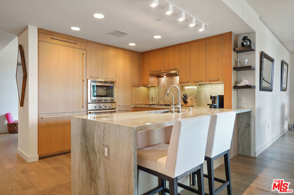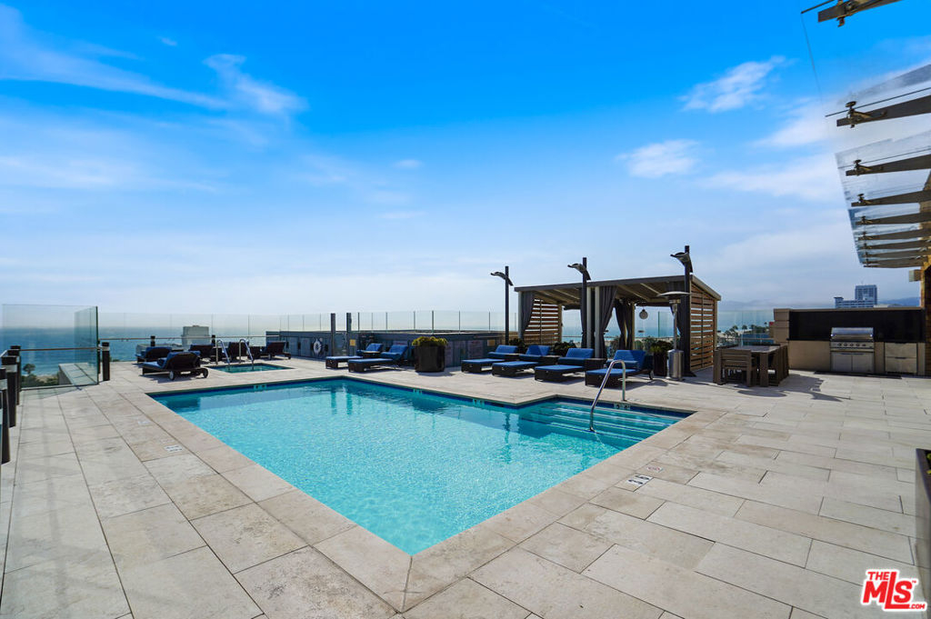 Direct ocean views and modern luxury living in Santa Monica at the prestigious Seychelle combines comfort and convenience with first-rate amenities. You are steps away from the beach, world-class dining, entertainment at the 3rd Street Promenade with Main Street, Rose Avenue, and Abbot Kinney nearby. Savor and revel in the fresh ocean breeze in this airy, sun-flooded 2 bedroom 2.5 bath plus bonus den and home office space. The most expansive and open two bedroom floor plan within the building is fully equipped with modern finishes and custom upgrades. The primary bedroom boasts two walk-in closets, an en-suite bathroom with a walk-in rain shower, and a luxurious deep soaking tub. Highlighted by floor to ceiling windows, marble countertops, a chef's kitchen with top of the line finishes featuring designer cabinetry and appliances provides a grand and inviting living space. Other features include a custom-built wet bar, one-of-a-kind multi-function European window, automatic shades, and upgraded Lutron switches. This home also comes with two side-by-side parking spaces in a secured garage equipped with a private EV charging station and a massive storage unit. The Seychelle, Santa Monica's newest condominium, is amenity-rich, featuring an expansive roof-top deck with breathtaking panoramic views of California's most famous coastlines. The heated saltwater pool, jacuzzi, cabanas, outdoor dining areas, as well as, a spacious indoor lounge room are perfect for entertaining and private parties. Included is a world class fitness center and yoga/pilates studio that flows out to a beautiful outdoor deck. 24-hour security and concierge, business center, pet spa, and bike storage gives you everything you could possibly need right at your fingertips. This premier home is truly incomparable and reflects the refreshingly delightful Southern California lifestyle!