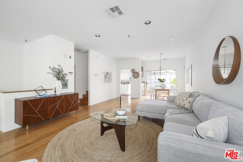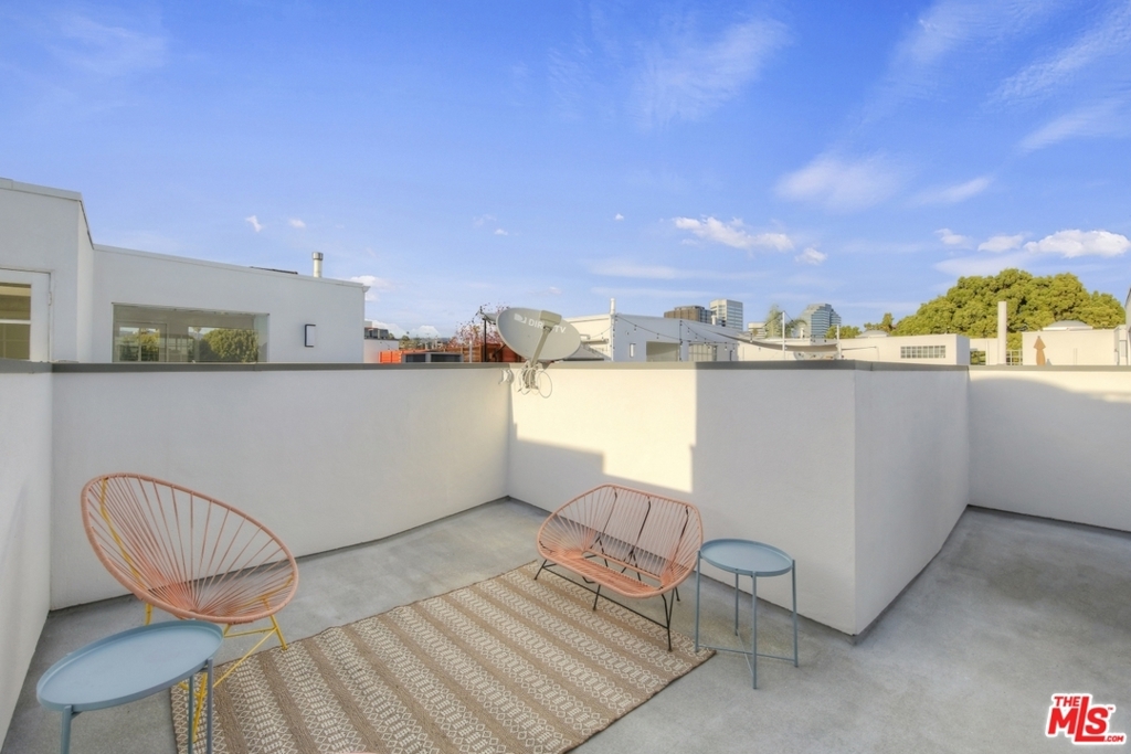 Live in as-is or customize this spacious 1,868 sf townhouse with 2 BD+ 2.5 BA+ flex room+ wraparound rooftop deck. The ground level offers an open living/dining room and eat-in kitchen with 2 outdoor spaces, a fireplace and high ceilings. Below is a direct access 2-car private garage and large flex room that could be a perfect office, gym or media room. Upstairs features a generously sized, bright main suite along with another bedroom suite. Additional highlights include: brand new HVAC system, bamboo flooring, and pride-of-ownership secure building. To top it off, a wraparound rooftop deck with views provides opportunities for both sunbathing and star gazing. Conveniently located near markets and eateries on both Wilshire and Santa Monica Blvd.