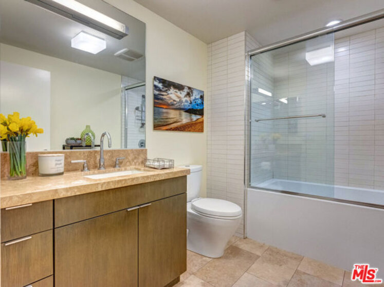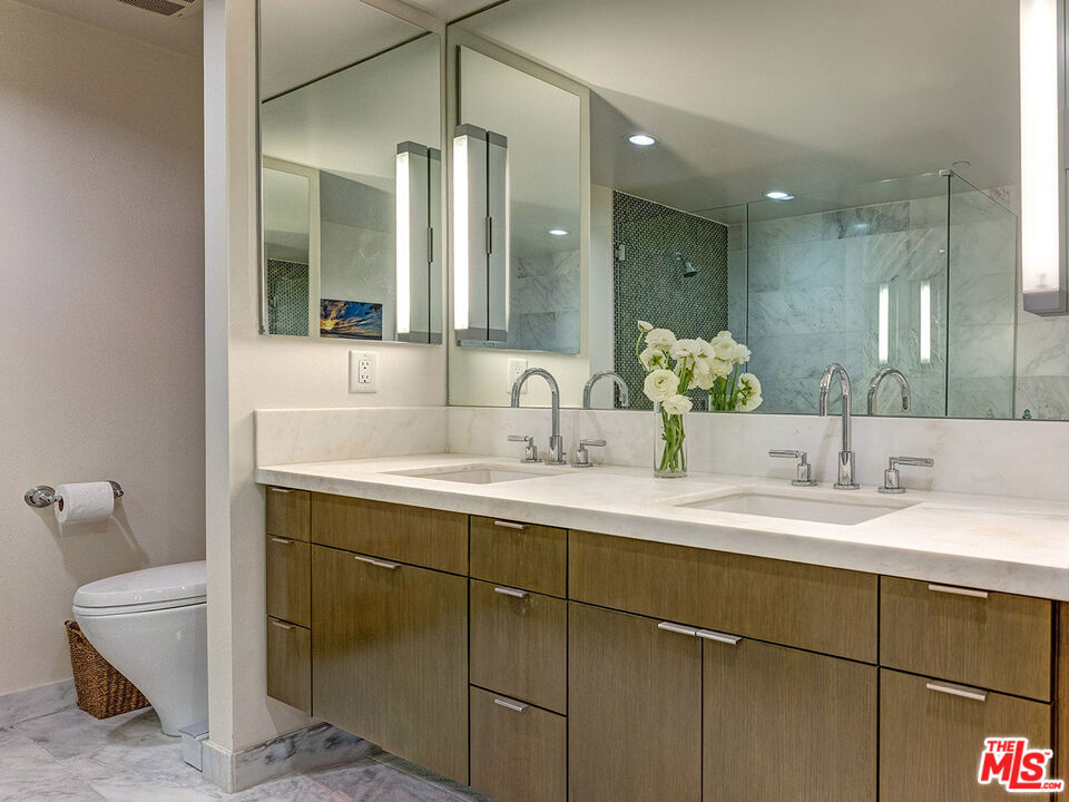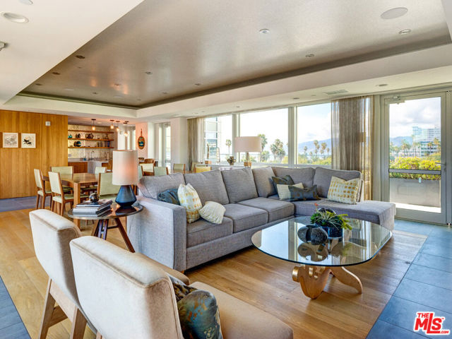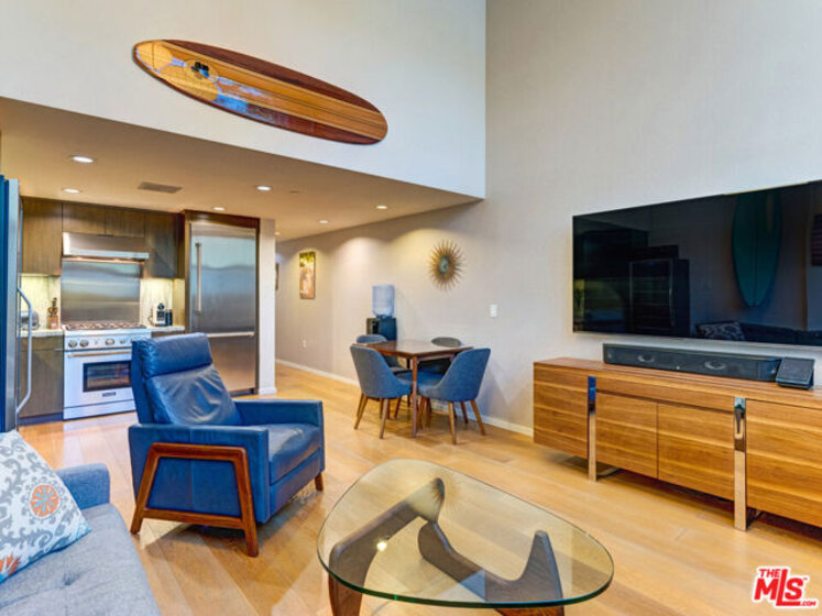 Experience the epitome of coastal luxury living at The Waverly on Ocean Avenue, one of Santa Monica's most sought-after new condominium offerings. An unbelievable value, this stunning model residence spans two levels and features two bedrooms and two bathrooms, all impeccably designed by world-renowned Marmol Radziner. Soaring double-height UV-reflective windows with motorized shades fill the home with natural light while offering serene views of Tongva Park.The open-concept living space boasts 14-foot ceilings, wide-plank hardwood floors, and a chef's kitchen outfitted with Thermador stainless steel appliances, Sea Pearl quartzite countertops, and custom oak cabinetry. Upstairs, the private primary suite is a true retreat, complete with a walk-in closet and a spa-inspired bathroom featuring a dual vanity, soaking tub, and glass-enclosed shower.Additional highlights include an in-unit washer and dryer, dedicated storage (including separate bike and surfboard storage), and side-by-side parking for two vehicles. Residents of The Waverly enjoy a wealth of five-star amenities: a 24-hour doorman/concierge, security services, fitness center, pet spa, and exclusive access to the Skybridge Lounge a fifth-floor sanctuary with a full kitchen, fireplace, barbecue, private patio, and sweeping ocean views. Perfectly situated just steps from the beach and moments from Santa Monica's premier shopping, dining, and entertainment, this residence truly offers it all.