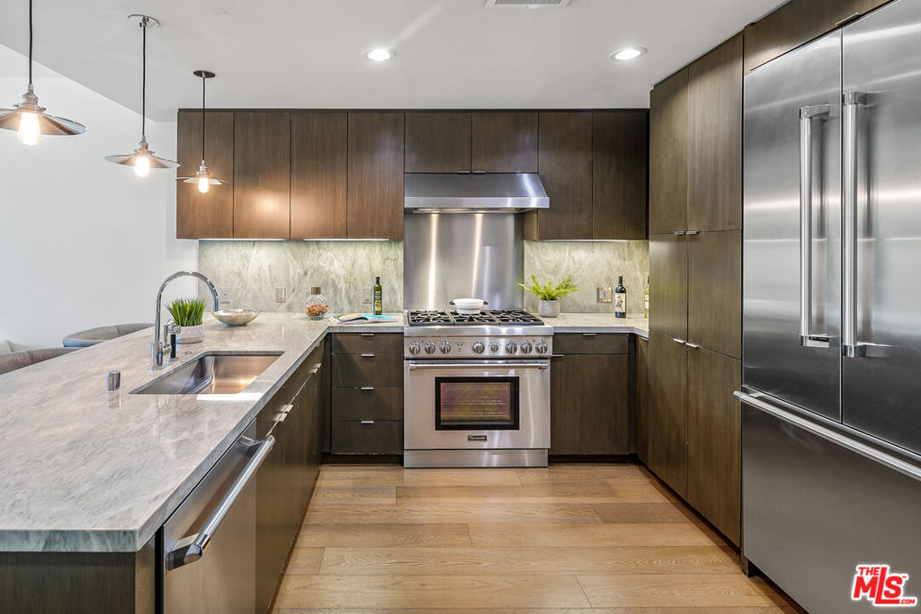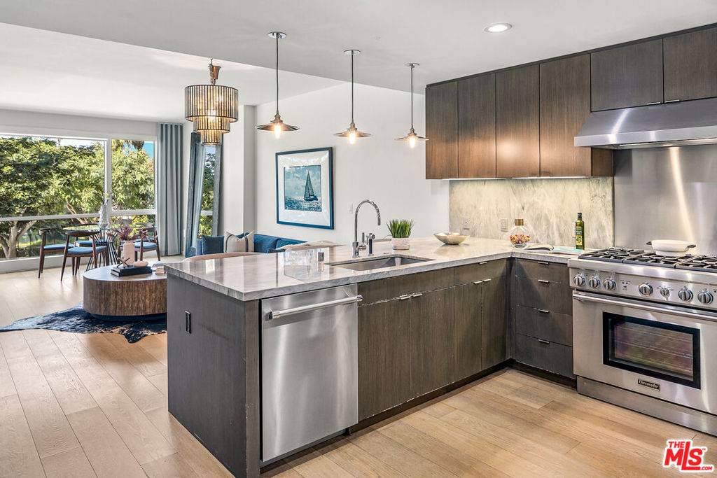 PRICED TO SELL! Exciting opportunity to live in the exclusive The Waverly at Ocean Avenue. This stunning North/West facing 2nd floor unit features an open layout designed by award-winning Marmol Radziner, with the finest materials, finishes, and appliances. The spacious primary suite has two walk-in closets, a luxurious white marble-clad primary bath with dual sinks, and a large balcony extending to the living room. Enjoy spectacular sunset views over the city and mountains from primary bedroom, living, dining, and kitchen. Private second bedroom across the unit features en-suite bath, and a den with potential as office or yoga studio. Building amenities include 24 hr concierge, gym, Starbucks, and 5th floor Sky Bridge Lounge for large-scale entertainment. Numerous restaurants in the immediate area, with world-class entertainment, shopping, and Santa Monica beach for the ultimate in California living.