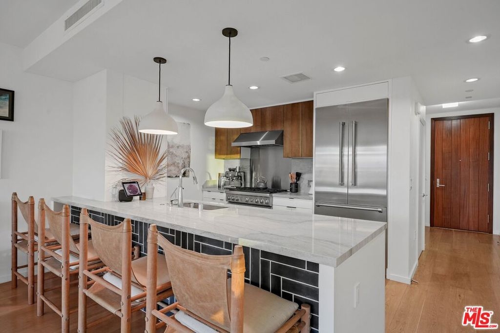 Experience the epitome of California coastal living in this exquisite 2-bedroom, 2-bathroom condo located in the prestigious Waverly building, meticulously designed by world-renowned architect Marmol Radzinger. Perched high above, this unit boasts breathtaking Whitewater, ocean, city, and mountain views that can be admired from both the living room and the master bedroom. Step inside and discover the artistry of AK Interiors' design, showcasing top-of-the-line finishes throughout. The open floor plan is adorned with elegant wood floors, high ceilings, and sliding glass doors that beckon you to the expansive balcony, perfect for savoring Al Fresco dining while relishing the most stunning sunsets. The primary suite is a tranquil retreat offering its own private balcony with captivating ocean vistas. It is complemented by a spa-like bath with steam shower that sets the stage for a relaxing and productive day ahead. The Waverly offers not only luxurious amenities but also 24-hour white-glove service, a state-of-the-art gym, and convenient storage options. Just around the corner, you'll find the world-renowned Santa Monica Beach, providing endless opportunities for leisure and recreation. This is your chance to embrace the quintessential California lifestyle in a residence that seamlessly blends luxury, style, and breathtaking natural beauty. Don't miss out on this extraordinary opportunity to call The Waverly home.