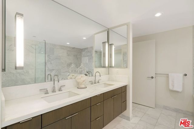 The perfect lock and go home in amazing location, just steps from the beautiful Santa Monica beach and walking distance to all the shopping and dining Santa Monica has to offer. Beautiful 2 bed, 2 bath two-story townhouse in the Waverly building, designed by Marmol Radziner and developed by award-winning developer, Related California. This residence is on the first floor and features hardwood floors, lots of natural light and a main floor bedroom. The great room is perfect for entertaining with two-story ceilings and an open gourmet kitchen featuring Oak cabinets, Quartzite countertops and Thermador appliances. The spacious upstairs primary suite offers a large walk-in closet and spa-like bath with Quartzite counters and tile accented shower and soaking tub. The unit also includes an interior washer and dryer as well as 2 indoor side by side parking spaces one of which has been equipped for EV charging station and owner's storage space. Enjoy utmost convenience with all the amenities the building has to offer, including a fitness center, 24-hour concierge, pet spa and lounge with full kitchen, BBQ out door seating and ocean views for your own private dining events. No amenity has been overlooked - this is the perfect spot to call home!
