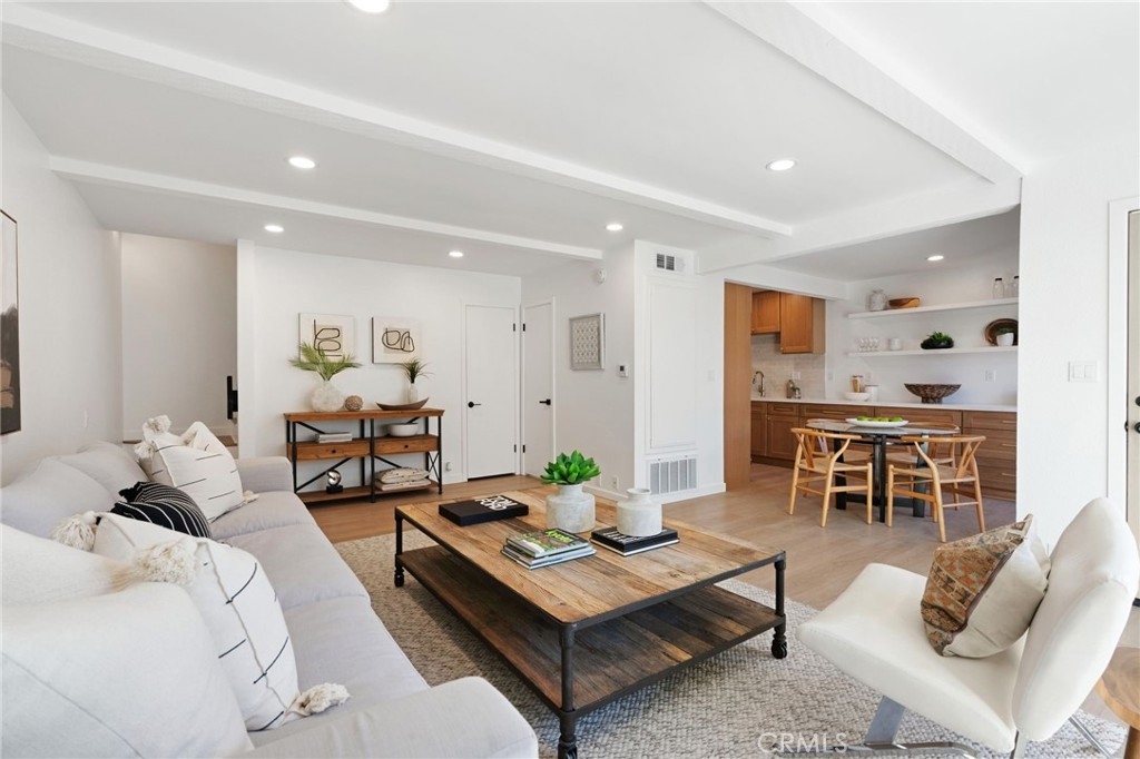 Welcome to your dream sanctuary in one of LA's most coveted neighborhoods with a one car garage, designated covered carport spot, 2 bedrooms, and 2.5 bathrooms. This meticulously reimagined residence offers over 1,200 square feet of thoughtfully curated living space, where contemporary design meets coastal sophistication. The moment you step inside, you'll be captivated by the seamless flow of the open-concept layout, anchored by a fireplace in the living room that sets the perfect ambiance for both relaxation and entertaining. The chef's kitchen is a masterpiece of modern design, featuring sleek quartz countertops that cascade across generous workspace. Custom soft-close cabinetry in on-trend finishes conceals clever storage solutions, including a dedicated spice cabinet and oversized pots and pans drawers. The premium new appliances include a professional-grade gas range and whisper-quiet dishwasher that make hosting dinner parties a breeze. Artisanal floating shelves and a designer Kraus sink complete this magazine-worthy culinary haven. Your private retreat awaits upstairs, where two generously proportioned bedrooms offer the perfect escape. The primary suite features a bathroom with a dual sink custom vanity, ample storage, premium fixtures, and walk in shower. Every bathroom has been impeccably appointed with designer touches, from new contemporary vanities to modern lighting fixtures. The convenience of an upstairs washer and dryer adds to the thoughtful design of this home. No detail has been overlooked in this stunning renovation. The entire residence has been elevated with luxury vinyl flooring, recessed lighting, and fresh designer paint throughout. Beat the summer heat with central air conditioning and stay warm during winter with central heat. Your private patio is perfect for morning coffee or evening wine. Property includes one car garage and one covered carport spot. Located in a premier Santa Monica enclave, this residence offers the quintessential California lifestyle. Start your morning with a stroll to Douglas Park, grab your essentials at nearby Whole Foods, or indulge in retail therapy along Montana Avenue's exclusive boutiques. Weekend beach excursions are just minutes away, while the close proximity to prestigious McKinley Elementary School adds to the allure of this exceptional location. This is more than a home – it's an invitation to elevate your lifestyle in one of LA's most iconic coastal neighborhoods.