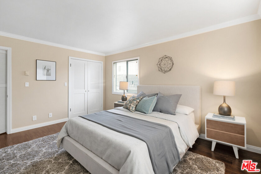 Step into this immaculate Mediterranean-style condo, just a few blocks away from bustling Montana Ave and Wilshire Blvd, where you'll find plenty of restaurants, coffee shops, retail stores, gyms and grocery stores to choose from. Located in a quiet neighborhood and highly reviewed school district, this elevated corner unit shares only one adjoining wall and features three spacious bedrooms (walk-in closet in the master bedroom), two bathrooms, in-unit washer/dryer, two side-by-side garage parking spaces with additional storage, and an abundance of natural-light. This controlled access property also includes recently renovated flooring and kitchen countertops, stainless steel kitchen appliances, and an upgraded electrical panel. Plus, low HOA dues with gas, water, common area maintenance and earthquake insurance included. (Property has three bedrooms w/ closets however records show as two bedroom)