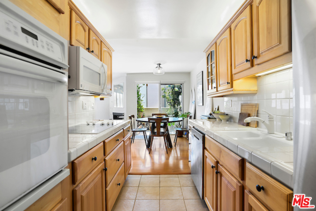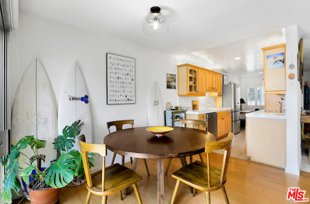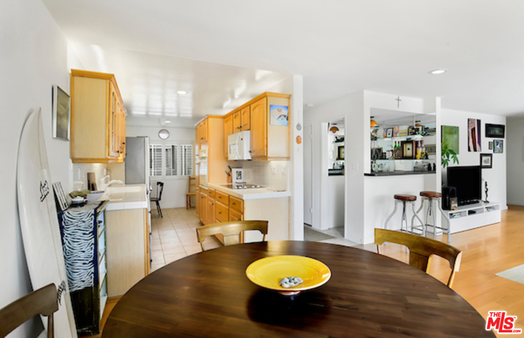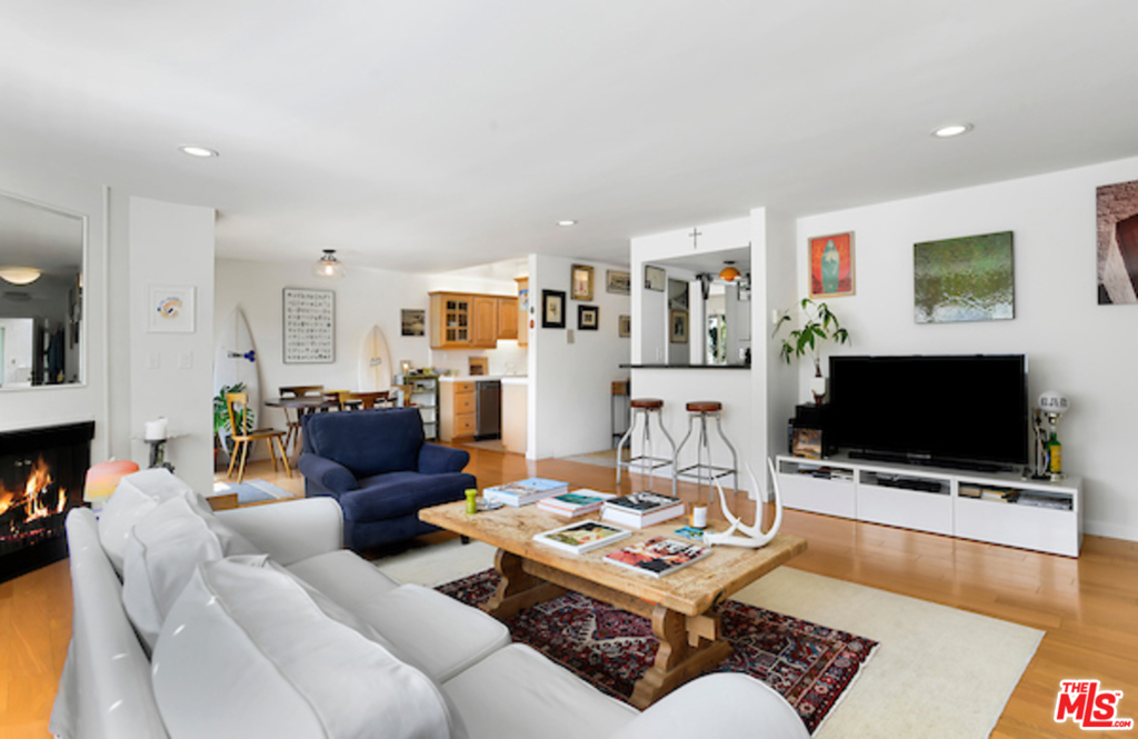 Experience The Beach Vibe in this Santa Monica Condo! Abundance of natural light in this Southwest facing unit. Very Spacious and well-laid out floor plan with hardwood floors throughout. Beautifully tiled formal entry with open and flexible living area with fireplace, plantation shutters and recessed lights, separate wet bar area w/ shelves and counter, tiled kitchen w/ good size eat-in breakfast area. Enjoy the ocean breeze from your private patio. Large master suite w/ sitting area, tastefully remodeled bathrooms, ample closet and storage space, master bath w/ marble counters and dual sinks and separate tub and shower and vanity area, Inside laundry, Huge second bedroom w/ space for office desk. Controlled access and 2 car security parking. Homeowners dues include water and earthquake insurance. The Toulon Garden Condominiums is blocks away from Montana Ave and Wilshire Blvd. Close Proximity to the Beach, Palisades Park, shops, cafes, restaurants and services.