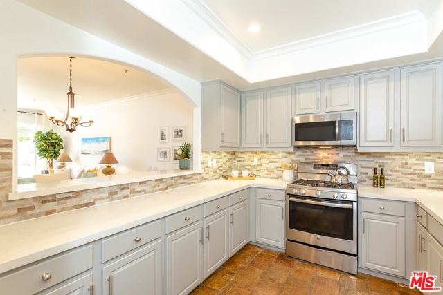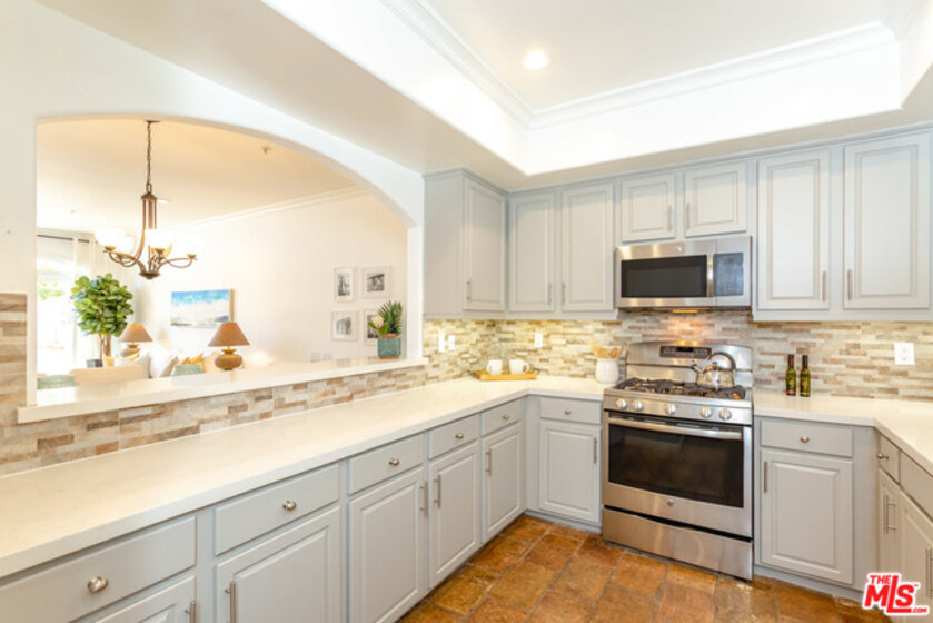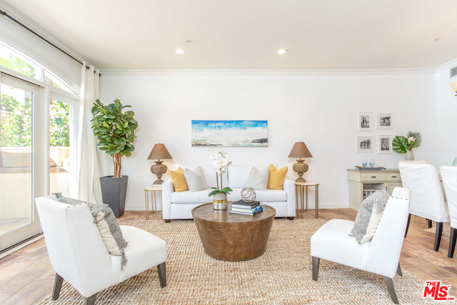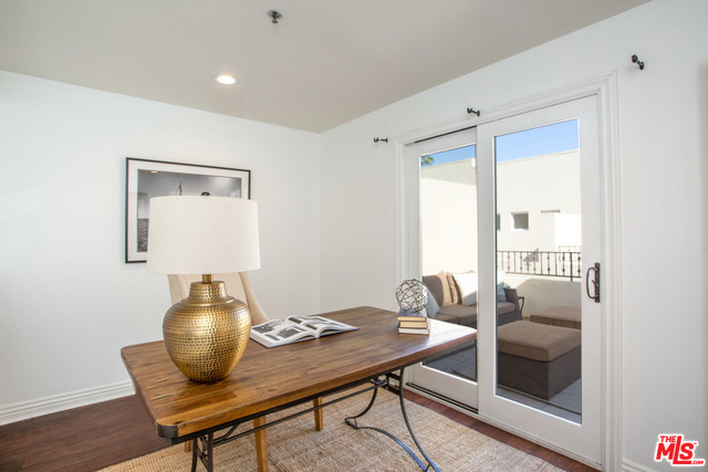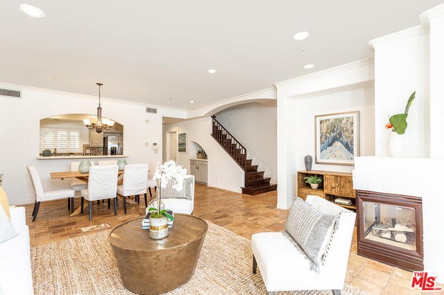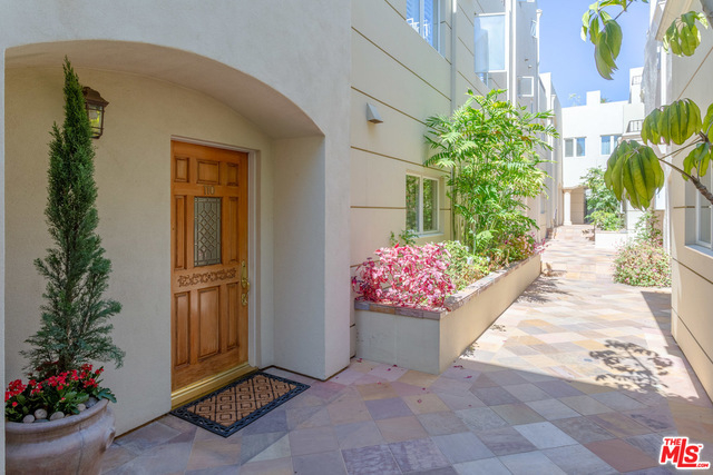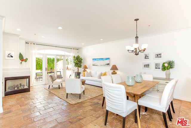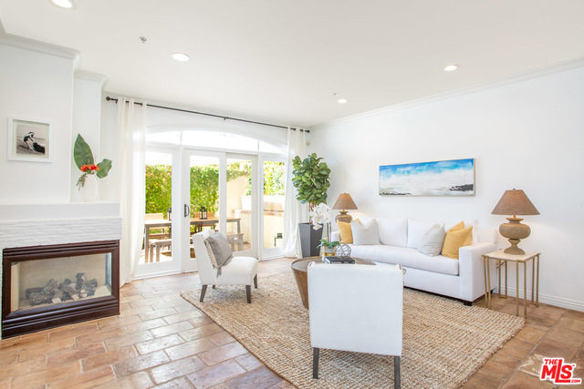 Contemporary Tuscan townhouse in convenient Santa Monica location close to shops, restaurants, Erewhon & more! Enjoy high ceilings & gorgeous afternoon light that streams through the north facing French doors of the open living area, creating an inviting, sun-filled space. Relax on the large patio, or head inside to cozy up in front of the romantic fireplace. Entertain from the large cook's kitchen w/ chic color palette, quartz counters, tile backsplash & stainless-steel appliances, grand arched pass-through and breakfast bar. Retreat to the bright master suite with lofted ceilings and French doors opening to a Juliette balcony, just right to enjoy cooling ocean breezes. Lg master bath w/ deep soaking tub, separate shower & dual sinks. 2nd bedroom & full bath on 2nd level. Large open loft (with potential for enclosing as separate room) & sunny roof deck on 3rd floor. EQ ins, Central HVAC, 2-car garage, finished basement room, laundry inside. Gorgeous home just waiting for you!