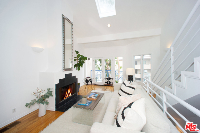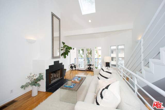 Ocean Views & Gorgeous Sunsets...This is beach living at its finest in this three-story contemporary condo in one of Santa Monica's most desirable neighborhoods, artfully designed by well known architect Barbara Coffman & Associates. Only two blocks to Main Street and four blocks to the beach, this bright, open, and airy home (one of only 6 in the complex), features 2 bedrooms, 2 full baths and ample closets on the first level; the kitchen, dining and living room, bbq terrace, along with a wood burning/gas assist fireplace and high vaulted ceilings with double skylights on the second level; followed by the beautiful partial ocean view loft on the third level, which can be used as either a bedroom, office, or additional entertaining space. Four outdoor patios, some with ocean views, complement the beach living lifestyle.This home also boasts hardwood floors, French doors throughout, in-unit laundry, central heat & air, secured side by side gated parking with extra storage & low HOA's.