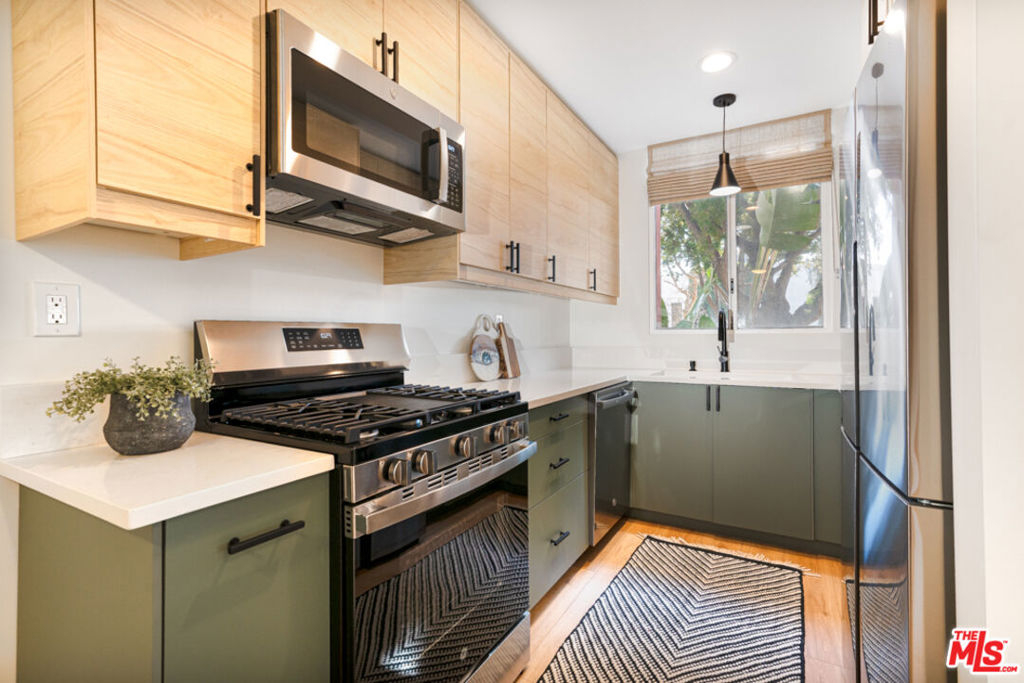 Don't miss the opportunity to live in Santa Monica in a contemporary redone condo at an incredibly affordable price. Be the first to enjoy this one bedroom, one bath condo since its total renovation. Light and bright end unit with white oak flooring throughout and a generously sized living room. The stylish kitchen with all new stainless appliances, caesar counters and plenty of cabinetry leads into a comfortable dining area. The bathroom features contemporary finishes and beautiful tile treatments. A primary bedroom with recessed lighting and plenty of space to relax completes the interior offering. Amenities include a community pool and laundry as well as secure assigned covered parking. Close to so much - Whole Foods, Santa Monica College, Virginia Park and their Saturday Farmers Market, Bergamot Station and many great stores, coffee shops and restaurants. Take advantage of the beach and all that Santa Monica has to offer.
