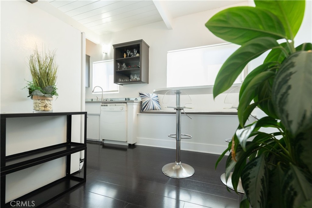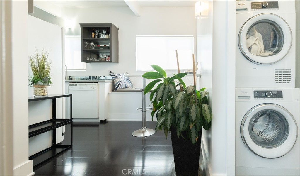 This top floor condo is a rare opportunity at 2325 Kansas Ave. It has a well laid out floor plan with high ceilings, making the 650 sq feet feel much bigger. It has east/west exposure, creating a light and airy atmosphere. It has richly stained floors, adding a sophisticated touch. It has quartz counters and open shelving in the kitchen for a modern look. It has a generously sized bedroom with a wall of closets for good storage. It has laundry hookups for your own stackable washer & dryer. It has an updated bathroom with modern vanity. There is a pool in the courtyard and common area decks for entertaining. The building is located across the street from Whole Foods and the Virginia Avenue Park. Great location near shops and restaurants. Two miles from the beach.