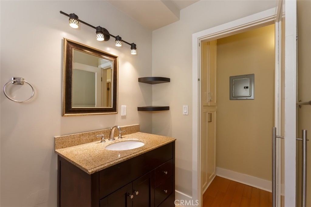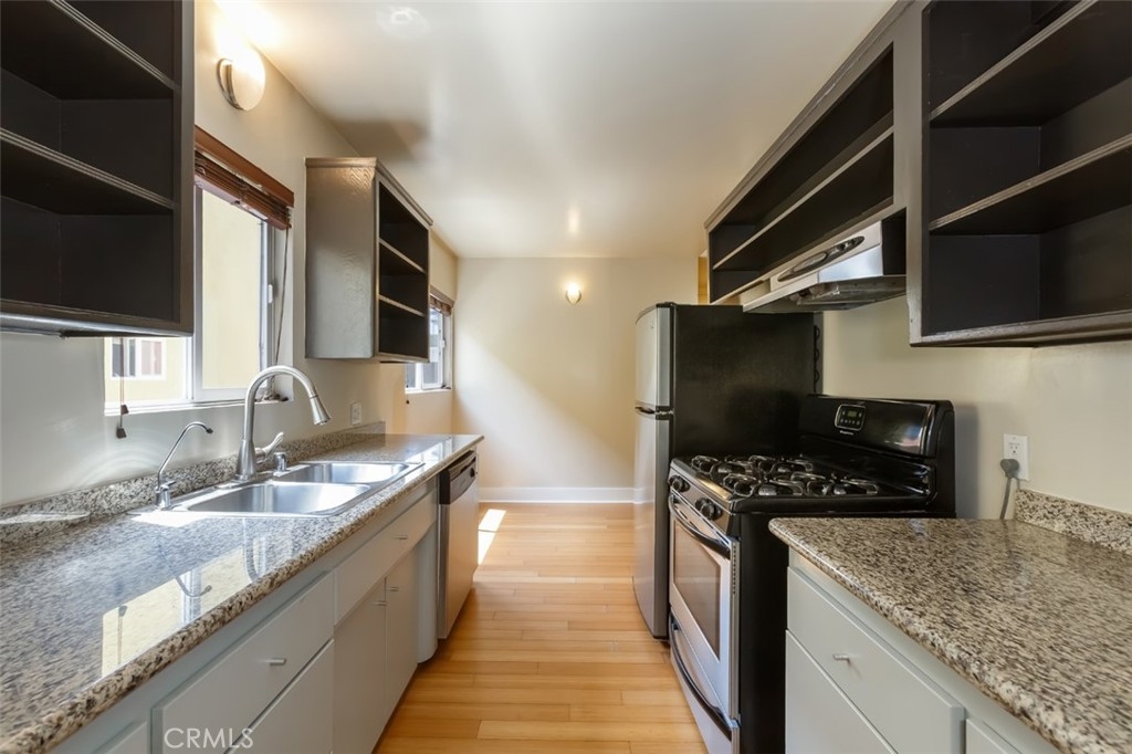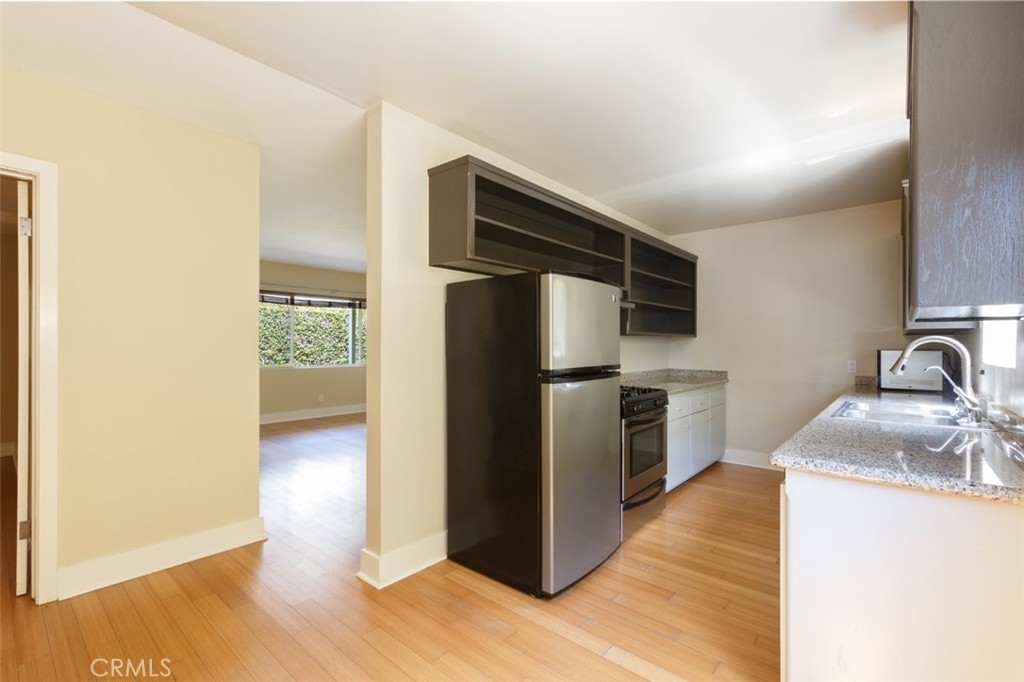 This ground level, beautiful, mid century condo is ready for your Santa Monica lifestyle! The corner end unit features solid bamboo flooring, granite countertops in the kitchen & bathroom, a private, fenced patio with garden views and easy access to the laundry room and parking! The private and gated complex has a beautiful pool and 2 community patios for cooking and entertaining. The private covered carport has an extra storage locker & separate bike storage room for residents. The building had a custom renovation in 2004 by HGTV’s Kenneth Brown and HOA dues also include water, building insurance & earthquake insurance. Enjoy this beach-close neighborhood centrally located near a Whole Foods, public Library, weekly Farmer’s Markets, the Metro Line and breezy park.