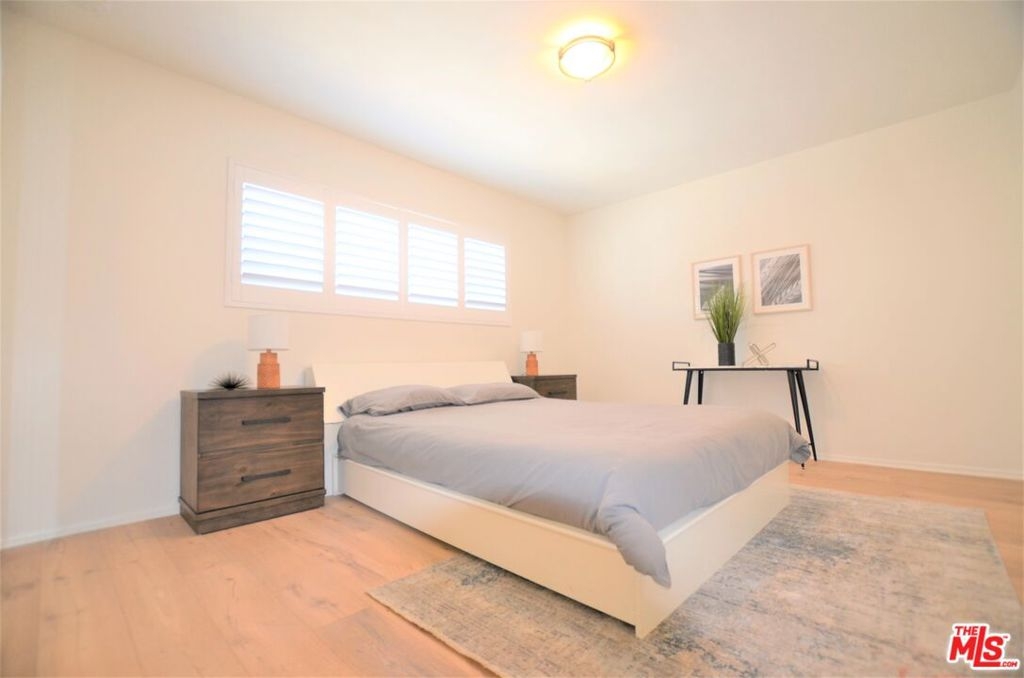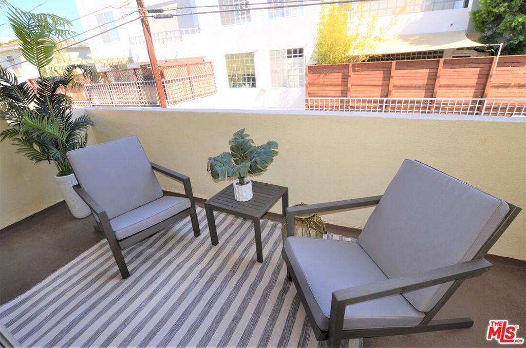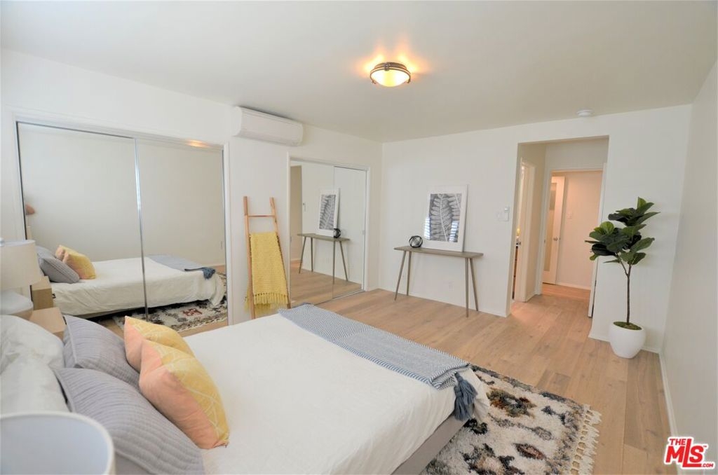 Bright and spacious top floor unit located in the heart of Santa Monica. This single level two bedroom, two bath condo is unique with no neighbors above or below. Only 1 small shared wall through the master bedroom closet, and has no other shared walls throughout the unit. Updated entertainers kitchen with open concept feel, plenty of storage with cabinetry in the living room, updated closet storage in both bedrooms, and ductless heating/AC. Featuring newer wood flooring throughout, recessed lighting, gated parking, window shutters and LG combination washer/dryer with a bonus LG Sidekick washer. Laundry closet can also accommodate a stackable washer/dryer. Enjoy barbecuing and al fresco dining on your private balcony. Highly desired location close to shopping, dining, transit and great schools. Peaceful, lush courtyard, assigned parking space close to unit and large garage storage space. Welcome home to Santa Monica living!