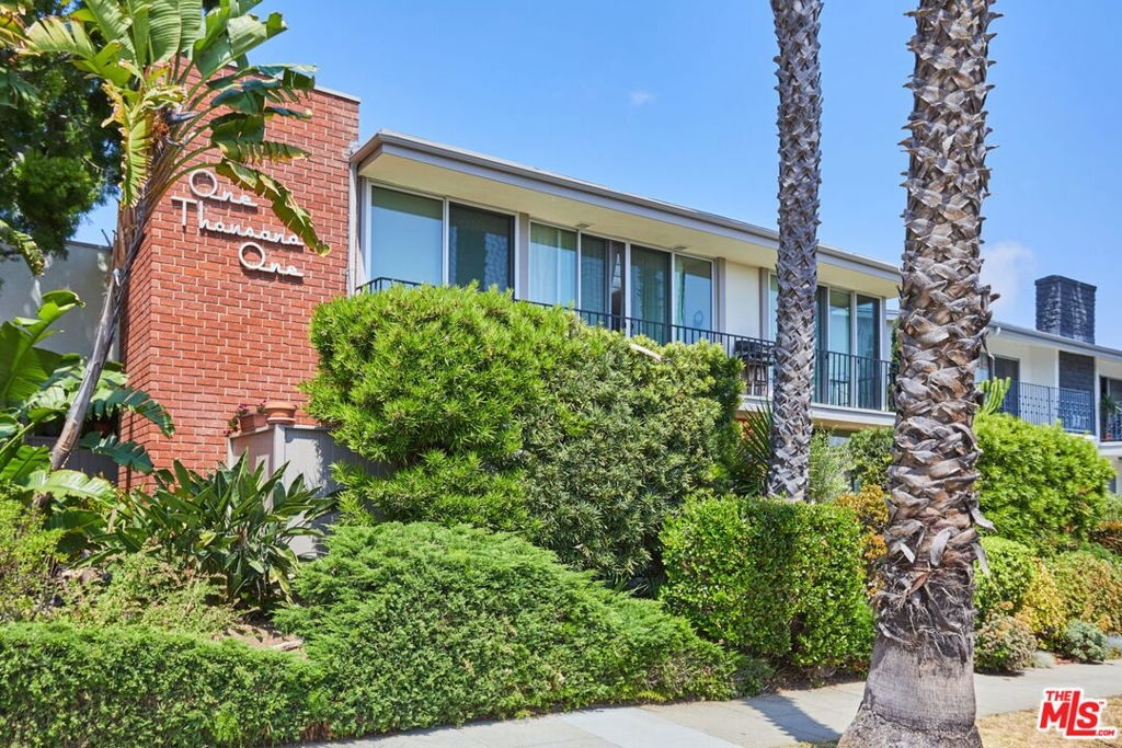 Rare Mid-Century Modern, top floor garden condo located in one of the coolest buildings south of Montana. Tucked away, enter this incredibly private and spacious one bedroom, one bath home with only one shared wall and its own direct entrance. Flooded with light, this corner unit offers an open floor plan with floor to ceiling walls of glass and sliding doors leading out to a huge, secluded balcony spanning the length of the unit. Kitchen with granite counters and newer refrigerator, dishwasher and microwave. Peaceful Master bedroom complete with walk in closet, AC wall unit and sliding doors out to sundeck. Truly incredible exclusive balcony surrounded by mature trees and greenery offering an amazing garden like setting. Other features include: Hardwood floors, fireplace, inside laundry & a private 1-car garage. Low HOA dues including earthquake insurance. Definitely not your average cookie-cutter Santa Monica condo. Dont miss this incredibly special, one of a kind property.
