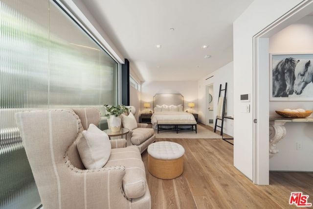 Just steps from the ocean, this SoCal Beach abode is tucked within a charming Craftsman style architecture and was meticulously updated in 2016 from top to bottom, to blend timeless character with modern living. Bright, airy interiors feature soaring vaulted ceilings, smart home lighting, integrated security, and high-end finishes throughout. The open-concept main living space is anchored by a cozy fireplace and seamlessly connects to the dining area and kitchen, creating an inviting atmosphere perfect for both everyday living and entertaining. The chef's kitchen is outfitted with quartz countertops, Miele appliances, a built-in water filtration system, and abundant storage. The dining area is spacious and airy, framed by translucent floor-to-ceiling walls of glass that provide both privacy and natural light. The primary suite offers a serene retreat with a reading nook, private patio access, and a spa-inspired en-suite bathroom with dual floating vanities, a soaking tub, a dual-headed shower, and a walk-in closet. Two additional bedrooms with their own bathrooms echo the same level of detail and quality found throughout the home. Rare for the neighborhood, the residence boasts multiple private outdoor spaces, including a large patio off the primary suite ideal for year-round lounging or entertaining, as well as an intimate terrace off the home office nook. Two secure garage parking spaces with EV charging access add everyday convenience. With Palisades Park, the beach, Montana Avenue, and an array of shops and restaurants just a short stroll away, this home embodies the coveted Santa Monica lifestyle.