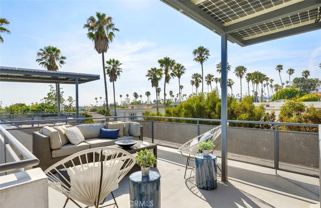 Nestled in the heart of Santa Monica, we welcome you to Santa Monica's First Sustainable Townhome Community. Experience modern eco-conscious living in this tri-level architectural masterpiece designed by award-winning architect Jesse Bornstein. Featured in the LA Times, this exclusive 5-unit townhome complex is ideally situated in the highly sought-after Wilshire Montana neighborhood, just blocks from Erewhon, Whole Foods, Trader Joe’s, Palisades Park, the Santa Monica Stairs, and the iconic Santa Monica Beach. Inside, experience a bright and spacious 2-bedroom plus loft, 2.5-bathroom home offers the perfect blend of luxury, sustainability, and convenience. The entry level features two generously sized bedrooms, each with ensuite bathrooms and custom California Closets. The primary suite opens to a serene private-use patio, ideal for gardening, yoga, or morning coffee. A stackable washer/dryer is conveniently located near the bedrooms. With an abundance of natural light, this level boasts dramatic ceiling heights, a stunning double-sided bio-ethanol fireplace, and an open concept layout perfect for entertaining. Enjoy the gourmet kitchen with Viking appliances, a formal dining area, a powder room, and a veranda for seamless indoor/outdoor living. Ceiling surround sound speakers elevate your movie nights. The loft level is comprised with a versatile space ideal for a home office, fitness studio, or creative retreat. Work your way up to sweeping panoramic views on the rooftop deck, showcasing DTLA’s skyline to the mountains and west to the Pacific Ocean. Additional highlights include a private direct-entry oversized 2-car garage, with Tesla EV charging station, fully paid solar powered system with 10 panels, secure, code-controlled access, and top-rated schools: Franklin Elementary, Lincoln Middle, and Santa Monica High. This one-of-a-kind sustainable townhome offers unparalleled living in one of Santa Monica’s most vibrant and walkable neighborhoods.