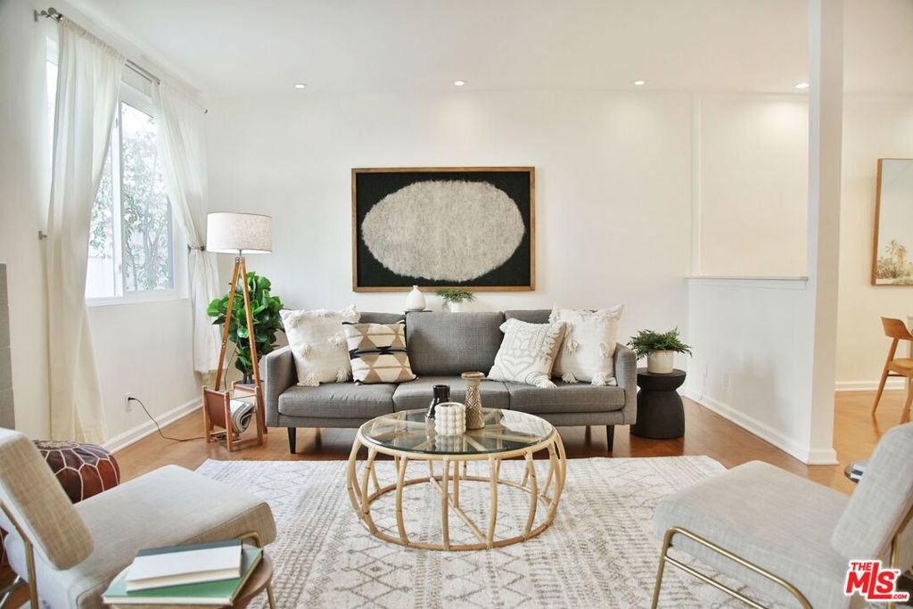 This stunning 3 bedroom, 2.5 bathroom townhome with bonus room in highly-desirable North of Wilshire neighborhood has been recently remodeled from top to bottom. Great floor plan that flows effortlessly through the entire home. Enter to bright and spacious living room with multiple windows. Engineered hardwood floors run throughout main level and large kitchen featuring quartz and butcher block countertops, subway tile backsplash, updated cabinets, crown moldings, and stainless steel appliances. Kitchen opens to dining area with attractive pendant lighting and adjacent large enclosed patio. Updated powder room also on main level. Head upstairs to all three bedrooms and two more remodeled bathrooms. Hardwood floors on the upper level as well. Owner's suite has multiple closets and en-suite bathroom. Spacious hall bathroom serves the other two bedrooms. On the lower level is a spacious bonus room that features side by side laundry and direct access to the community garage with two side by side parking spaces. Private walk-in storage closet in garage. Unit features newer central air and heat, updated windows throughout and HOA recently installed new roof and some piping/sewer line updates. Quiet location, but just a few blocks to Wilshire Blvd. and Montana Ave. dining and shops, parks, and close to excellent Santa Monica schools.