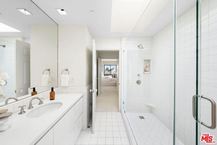 Incredible opportunity to own a one of a kind penthouse in Santa Monica. This sun-filled three bedroom, three and a half bath condo features over 2,800 square feet of luxurious living with ocean views from every room.The entryway leads to an entertaining area and flows into a bright, open living room with breathtaking vistas. The designer kitchen is equipped with top of the line Miele appliances, there's a formal dining room complete with its own wet bar, all accented by hardwood floors. The two main ensuite bedrooms are located on opposite sides of the condo, each with walk-in closets and private balconies. The third bedroom functions as an ensuite loft with a bonus room on the side perfect for entertaining and hosting guests, an office or a relaxing space to enjoy the waves with additional balconies.Surrounded by palm trees and just steps from the beach, this exceptional property boasts stunning views and multiple patios for soaking up the sun and taking in all that Santa Monica has to offer. The Sea Colony III enhances your lifestyle with 24-hour security, tranquil fountains, a pool, multiple spas, lounging areas, a gym, a yoga room, a sauna, and inviting public spaces.