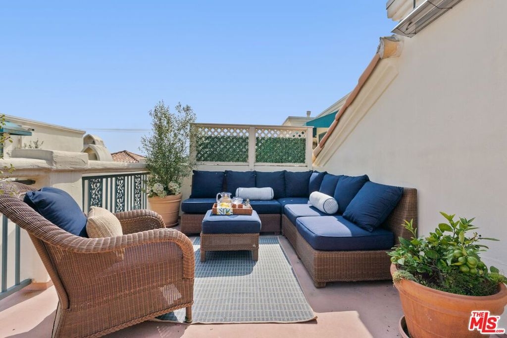 The curb appeal of this beautifully maintained building immediately exudes charm, hinting at the quality and care found throughout the property. Bathed in natural light, this immaculate 3 bedroom townhouse offers an exceptional opportunity to live in one of Santa Monica's most sought-after neighborhoods. As you enter the front door you'll feel right at home with a smart layout and exceptional flow. A formal dining room, adjacent to the well appointed kitchen hints at the ease of entertaining, and the spacious living room opens to a charming enclosed patio which is truly extension of the home allowing for easy indoor / outdoor California living! All three bedrooms are thoughtfully situated on the 2nd floor, with a shared full bathroom for the secondary bedrooms. The extra large Primary Suite is stunning with soaring ceilings, a walk-in closet, fireplace feature and elegant arched windows adorned with white plantation shutters, a beautiful detail found throughout the home. The ensuite bathroom with walk-in shower has dual sinks and an additional seated vanity. Stairs to the third floor lead to an open loft style den overlooking the Primary Suite - the perfect place for a quiet and bright home office with mountain views, and a spacious roof top deck for enjoying some zen with your morning coffee or an evening retreat to enjoy Santa Monica's sunset skies! With it's own private two car garage with direct access, extra storage space, laundry, and additional underground guest parking this property really does offer everything you cold hope for in a home. Nestled in the desirable North of Wilshire area, in the highly-rated Franklin Elementary School neighborhood and close to beautiful Douglas Park and Montana Avenue. You'll be spoilt for choice in such close proximity to Erewhon, Bristol Farms, and an array of nearby coffee shops and restaurants, including Sonny McLean's, Fia, and Milo and Olive to name just a few. Don't miss out on this Santa Monica gem!