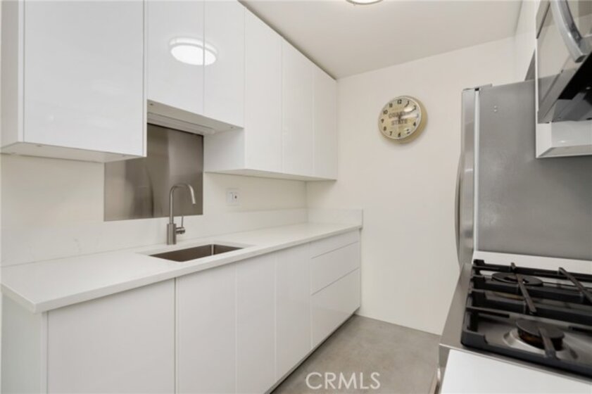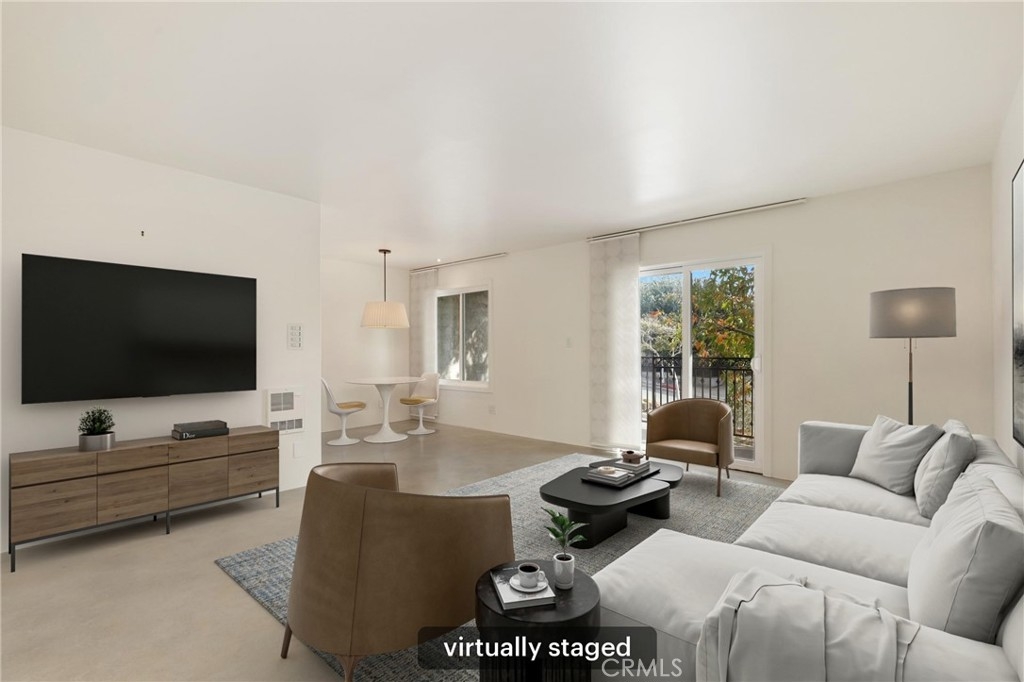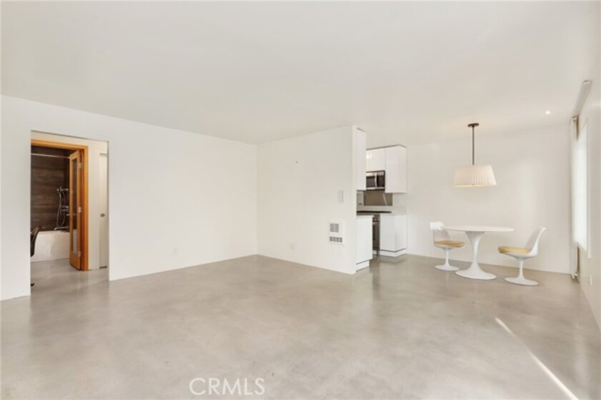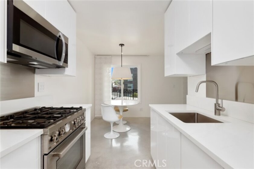 Welcome to this beautifully updated 1 bedroom 1 bath condo at 1125 Pico Blvd 109 offering modern comfort, thoughtful upgrades, and an ideal Santa Monica lifestyle. This residence has been completely remodeled with fully insulated walls for improved energy efficiency and sound reduction, newer vinyl windows, and a newer vinyl sliding glass door that fills the home with natural light and opens to the oversized balcony. Polished concrete floors deliver a clean, contemporary look that is both stylish and easy to maintain. The remodeled kitchen features modern cabinetry and stainless steel appliances including a Bertazzoni Professional series gas range, microwave hood combo, and refrigerator, and flows seamlessly into the dining area where the Saarinen table and iconic Tulip chairs are included in the sale, complemented by a Rejuvenation light fixture that beautifully anchors the space. The spacious living room opens directly to the balcony facing Pico Boulevard with a peek-a-boo ocean view through the palm trees, creating the perfect spot to enjoy morning coffee, evening drinks, or relaxed people watching. A short hallway leads to a flexible work-station that can be converted to a stackable in unit washer and dryer, recently approved by the HOA, and for those who choose not to install in unit laundry, the community laundry room is conveniently located immediately adjacent to the unit and is accessible without climbing any stairs. The luxurious full bathroom is appointed with Kohler fixtures and a deep 60 gallon soaking tub and shower combo highlighted by a ceiling mounted rain style shower head. Storage is abundant with a hallway closet and a walk-in closet in the bedroom, which is tucked privately at the end of the hall. The unit offers step free access with a gated ramped entrance from quaint 12th Street that leads directly to the condo without climbing a single stair. Additional features include one dedicated underground parking space and a private lockable storage area nearby. Located less than a mile from the beach and just a short stroll to restaurants, parks, schools, and shops, this home delivers the best of Santa Monica living while offering outstanding value in a highly desirable coastal community.