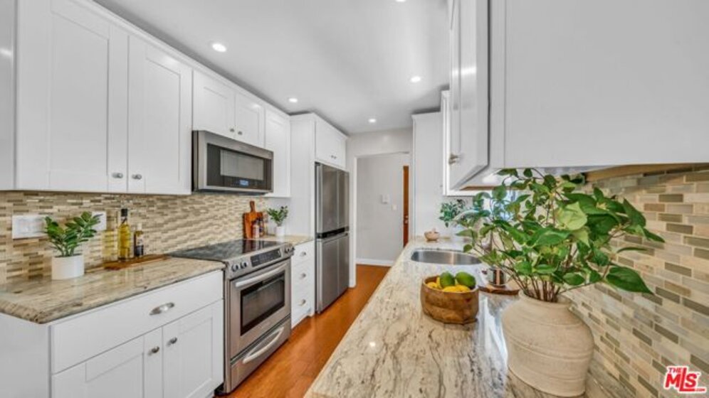 Front-facing two-bedroom and two-bath condominium with a large wrap-around balcony, three walls of windows, and almost no common walls. Extensively renovated with an eye for classic details such as stone counters, wood floors, designer fixtures, and tile, throughout the appealing modern floor plan. Everyday living is made easy with gated security, two parking spaces & extra storage. Well-maintained and friendly building. Homeowner's dues include earthquake insurance. Premier location close to the Promenade, Montana Avenue, Palisades Park, and the Ocean in the coveted Santa Monica School District. High quality & excellent value.