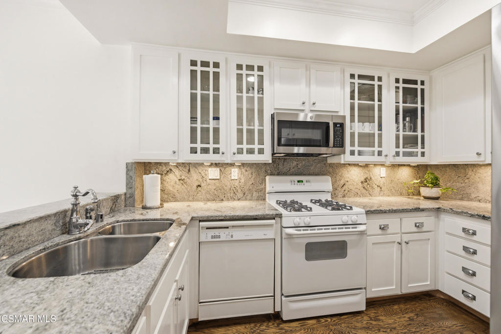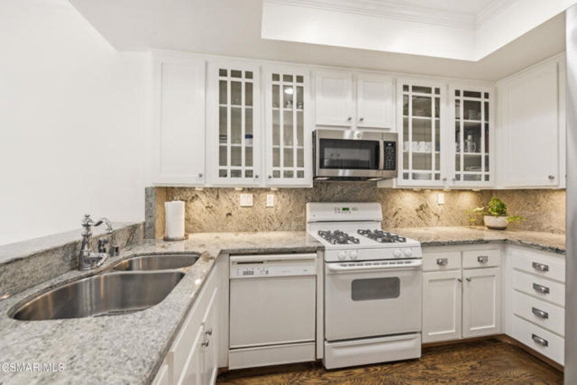Tucked within a beautifully maintained building in one of Santa Monica's most desirable neighborhoods, north of Wilshire Blvd, this bright and private corner unit two bedroom, single-level condo offers an exceptional blend of indoor-outdoor living and walkable Westside convenience. A standout feature are the two expansive private patio spaces--among the largest offered in the area-- creating a rare extension of the home perfect for entertaining, dining al fresco, morning coffee, or simply enjoying the coastal breeze. Inside, the thoughtfully designed open floorplan is filled with natural light and features warm wood floors, fresh paint, recessed lighting, built-in cabinetry, and seamless flow between the spacious living room, dining area, and kitchen. The inviting living room is anchored by a cozy gas fireplace, while the kitchen offers timeless style with white cabinetry, granite countertops, and newer appliances, including a gas range, microwave, dishwasher, and refrigerator, plus a sunny eat-in area. The primary suite includes an updated ensuite bathroom with dual vanity & marble countertops, a large tub and separate shower with marble & subway tile surround, and a walk-in closet, while the second bedroom and bathroom offer flexibility for guests, office space, or family living. Features include central HVAC, recessed lighting, plantation shutters, crown molding, inside laundry & freshly painted exterior. Additional conveniences include two side by side parking spaces in the community garage with direct elevator access to the unit floor--no stairs required, as well as a personal storage area. Located just moments from the boutiques and dining along trendy Montana Avenue, the Farmers Market, Third Street Promenade & the iconic Santa Monica Pier, and only 8 blocks to Palisades Park and the beach, this home presents a rare opportunity to enjoy privacy, oversized outdoor space, and the best of Santa Monica living.