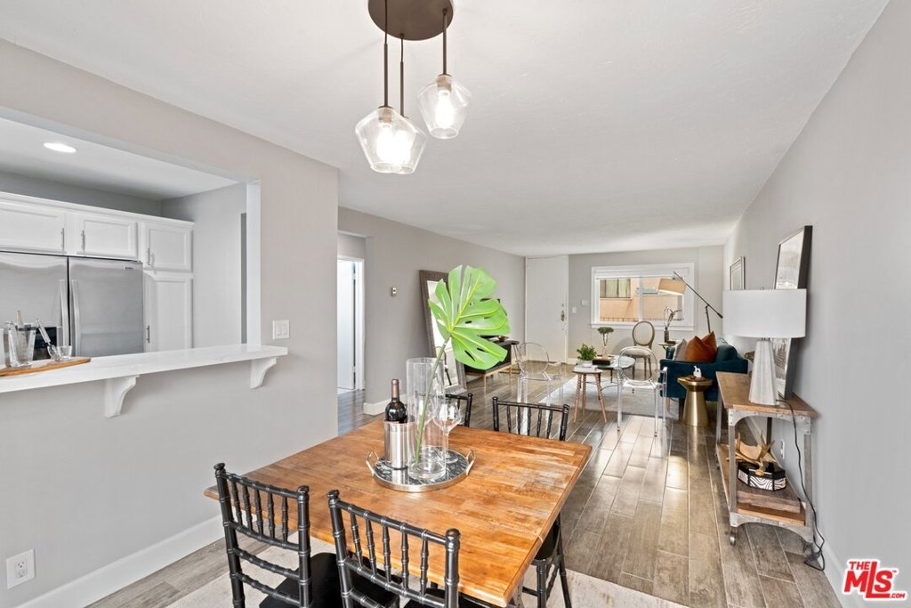 Located in the premier N. of Wilshire pocket of Santa Monica, this exquisite 2 BR / 2BA condo opens the doors to a beachy lifestyle convenient to Melisse, rustic canyon, Trader Joe's, Whole Foods, Reed Park, the farmers market, Vons and all the eateries + shops on Montana. This single-level condo is located on the 2nd fl of a 3-story complex of just 11 units. Open floor plan abundant in natural light and flooded w/ warmth and modern finishes. The living rm flows seamlessly into the dining area and just beyond beautiful French doors, a private patio decorated in art deco tiles. The modern kitchen opens out to the dining area. Quartz countertops, glass backsplash, SS appliances and modern cabinetry complete this white + bright kitchen. Tucked away is a master suite, 2nd bath and 2nd BR. The spacious master suite features a walk-in closet and ensuite bath glammed up w/ sophisticated marble finishes. Washer in-unit, 1 covered parking space + extra storage.