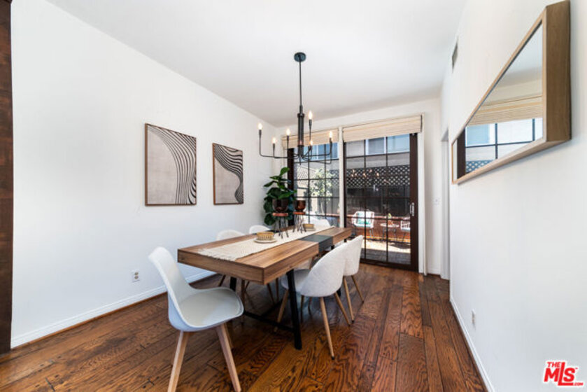 Welcome to this refreshed 2-bedroom, 2.5-bath townhouse, tucked inside an intimate 6-unit complex in Santa Monica's desirable North of Wilshire neighborhood. Hardwood floors run through the open living and dining areas, creating a warm and inviting space for everyday living and easy entertaining. The living room features a newly updated fireplace and opens to two private patios, offering peaceful spots to relax and enjoy the ocean air. The kitchen is filled with natural light from a large bay window, perfect for plants or a sunny breakfast nook, and includes stainless steel appliances such as a dishwasher, wall oven, and refrigerator. A step-in pantry adds practical storage. Upstairs, newly carpeted stairs lead to two spacious bedrooms, each with its own en-suite bathroom. The primary suite is especially inviting with vaulted ceilings, exposed beams, and a cozy fireplace. The very spacious walk-in closet offers excellent storage. Additional highlights include new HVAC, new Washer and Dryer and direct access to a private 2-car garage. Ideally located near Santa Monica's shops, restaurants, and beaches, with Whole Foods and Trader Joe's within walking distance, this townhouse offers comfort, convenience, and an exceptional location. Priced to sell. Offer deadline is Wednesday, April 22nd, 5pm