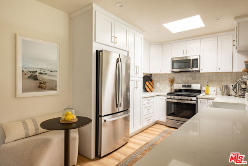 Welcome to this elegantly renovated townhouse, nestled in the heart of Santa Monica, North of Wilshire. This thoughtfully designed split-level home offers two spacious bedrooms, each with its own beautifully updated en-suite bathroom featuring stylish fixtures and sophisticated finishes. The inviting living room is bathed in natural light and boasts high ceilings and a cozy fireplace. The modern kitchen features brand new stainless steel appliances, generous countertop space, and ample cabinetry, ideal for both everyday living and hosting. Step outside to a private patio just off the living area, offering relaxation and cool breezes. Additional features include newly installed flooring, dual pane windows, recessed lighting, and a convenient in-unit washer/dryer. Located just blocks from vibrant Montana Avenue, you'll enjoy easy access to premier shopping, dining, and the Santa Monica lifestyle you've been dreaming of.