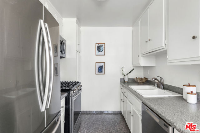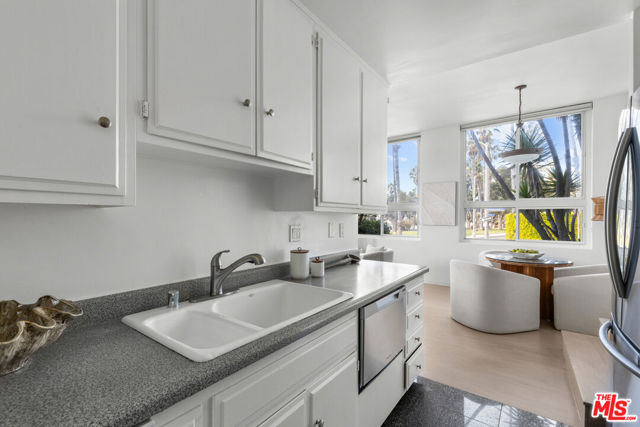 Experience coastal living at its finest in this bright and airy one-bedroom, one-bathroom residence just moments from the sand in the heart of Santa Monica. Located in an intimate boutique building of only nine units, this sun-drenched home captures the quintessential beachside lifestyle with large windows that frame unbeatable views and fill the interiors with natural light. The open-concept living space is anchored by a charming fireplace and flows seamlessly into the dining area and galley-style kitchen perfect for everyday living and easy entertaining. Elevated at the top of a short staircase, the private primary suite sits quietly at the rear of the property, featuring generous closets and a spacious bathroom. Additional highlights include community laundry and one-car parking in a secure, gated underground garage. Just moments from the beach, bike path, and all of downtown Santa Monica's shops and restaurants, this coastal gem offers the ideal blend of comfort, convenience, and California charm.