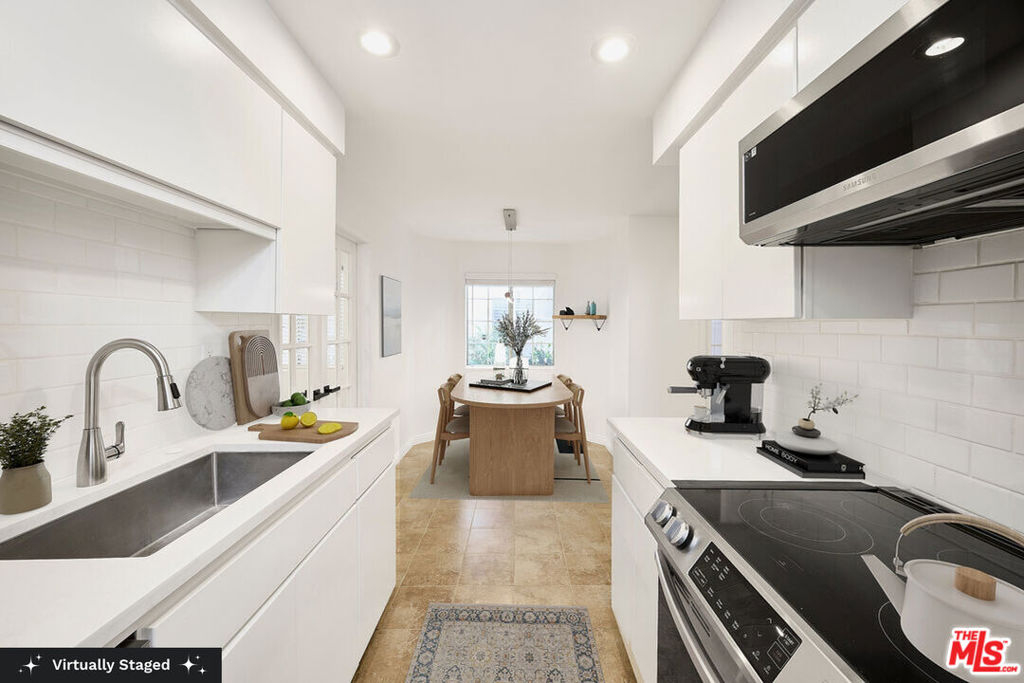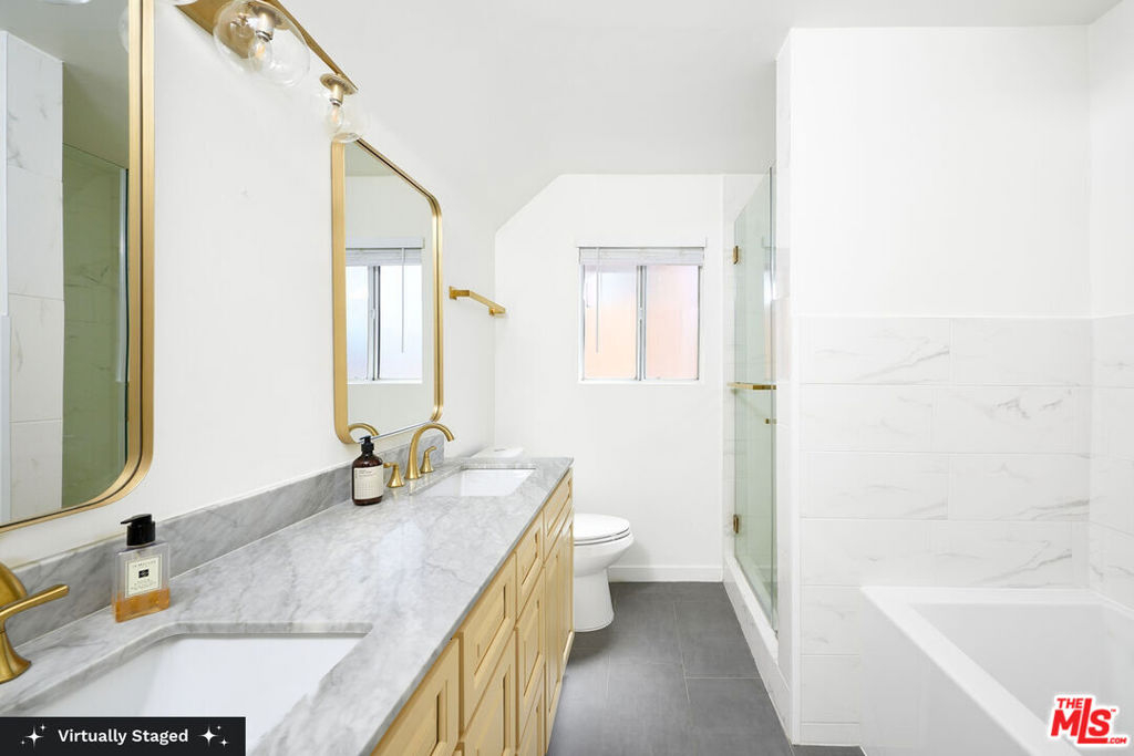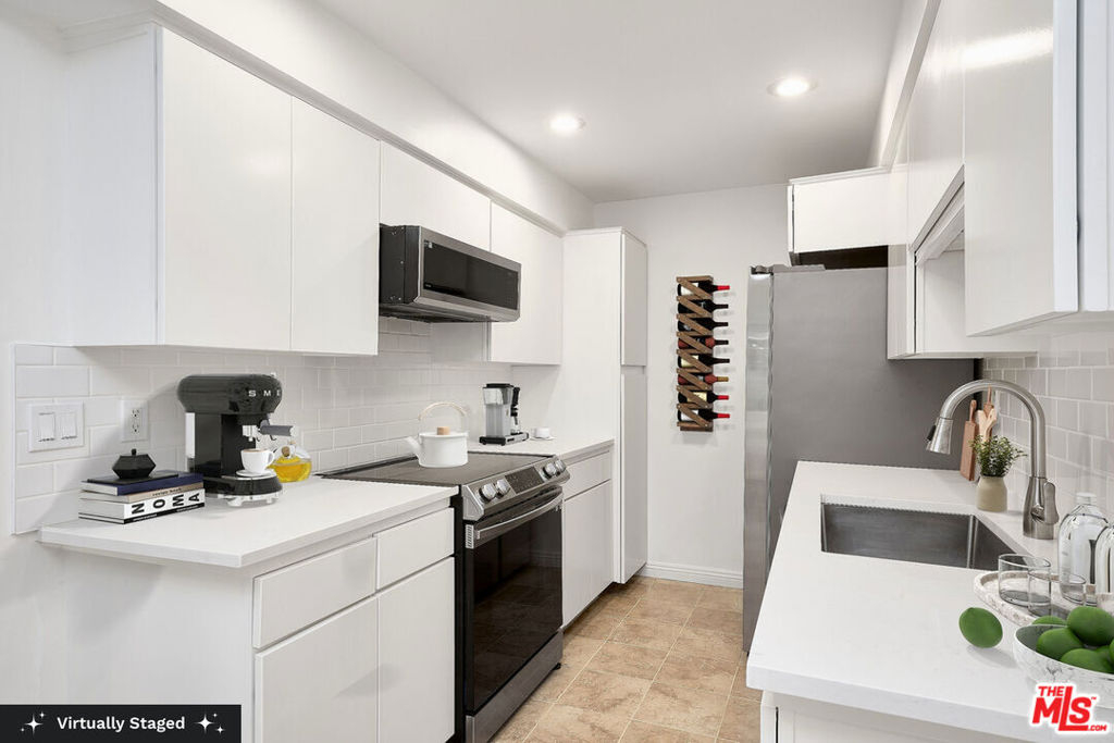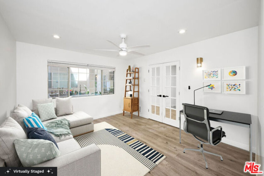 Welcome to this beautifully remodeled 2 bed, 2 bath condo with bonus 3rd bedroom/flex space ideally located just one block south of Wilshire. The versatile third bedroom is the perfect flex space - ideal for a home office, playroom, or home gym. Step into a spacious living room featuring a cozy gas fireplace, perfect for relaxing or entertaining. The newly renovated kitchen is equipped with stainless steel appliances and an electric stove, ready for all your culinary adventures. The primary suite includes a full en-suite bath, while the second full bath serves the additional bedrooms and guests. Additional highlights include in-unit washer and dryer, side-by-side parking, and extra storage rooms in the building. The community offers excellent amenities such as a gym, sauna and bike storage. Monthly HOA dues cover water, gas, and earthquake insurance for added peace of mind. All just 10 minutes from the beach with some of the Westside's best restaurants, bars, and shops, embrace the dream of Santa Monica coastal living!