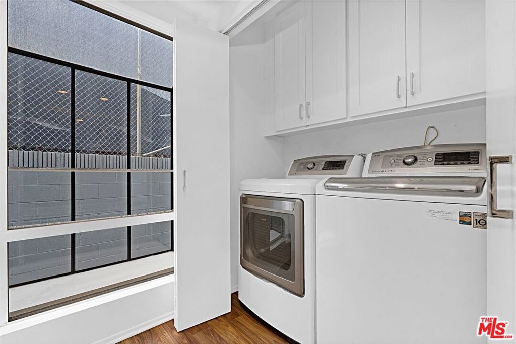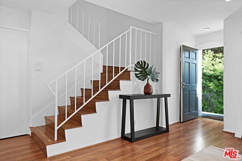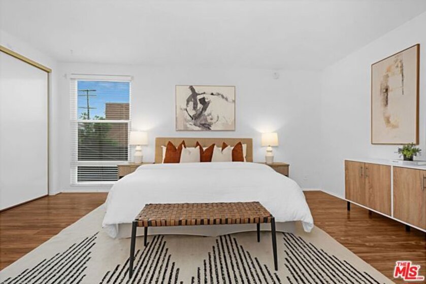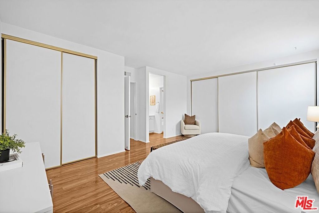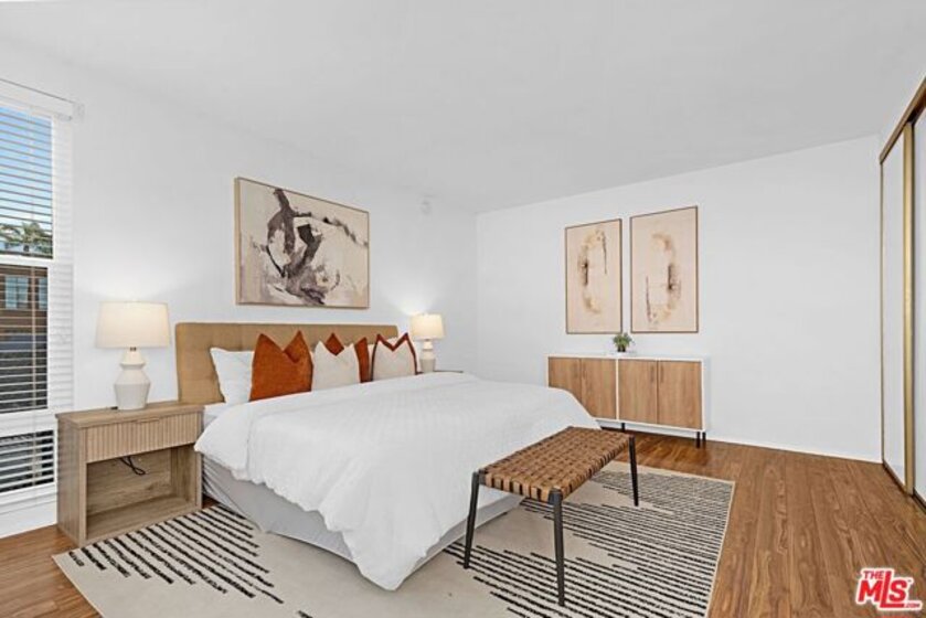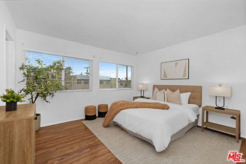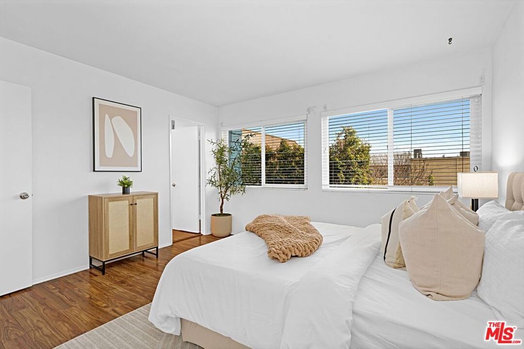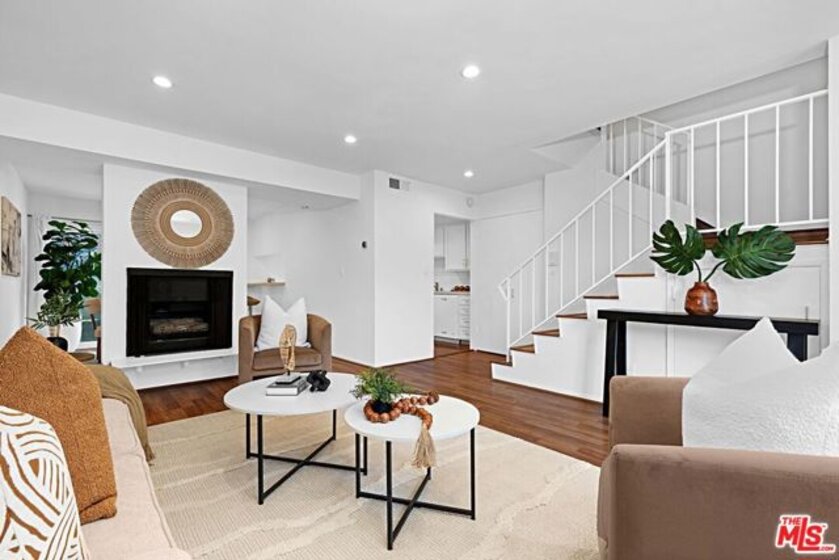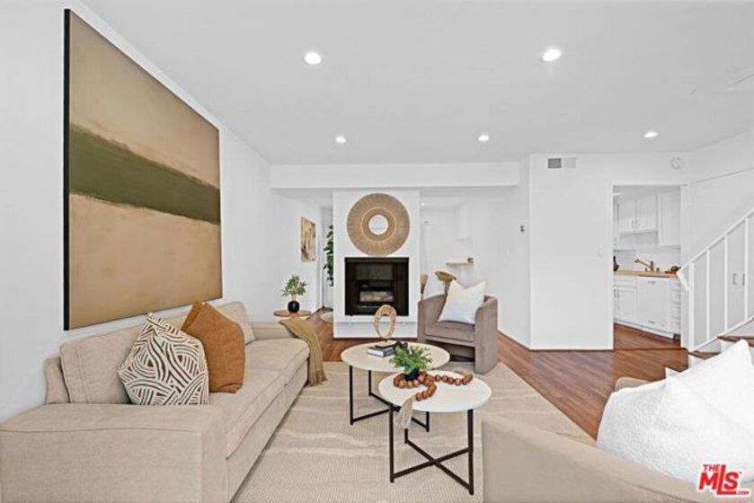Light and bright 2-bedroom 2.5-bathroom townhouse-style condo in prime Santa Monica with great floorplan, close to many shops and restaurants. Some upgrades include newer wood-type flooring, recessed lighting, newer powder room vanity, large kitchen with garden window, full sized laundry and some stainless-steel appliances. Nice private patio off of the living room plus an additional balcony for more outdoor space, newer dual paned windows for improved insulation and quiet living, and lots of storage throughout. The downstairs has a multi=purpose room that can be used as an office/den/formal dining room. Large 1/2-bathroom downstairs. The two bedrooms upstairs are both ensuite with good-sized bathrooms, and the primary bedroom has extra closet space on two walls. very small building with only 6 units, with reasonable HOA fee and this beautiful complex underwent a $180,000 renovation not long ago. Two side-by-side, private parking spaces in a gated underground garage plus additional storage in garage, central air conditioning and forced air heat, and is located in the famous Santa Monica school system.
