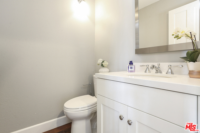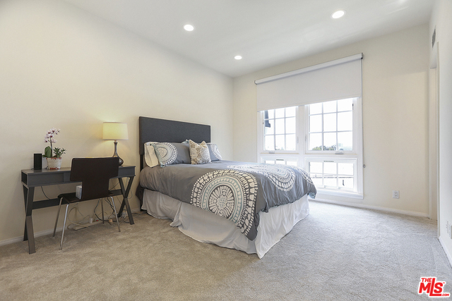 Don't miss this dramatic, inviting, 3 bed/3.5 bath tri-level townhouse in a great Santa Monica location. Light-filled main level w/wide plank dark wood floors. Spacious living room w/fireplace, French doors. Beautifully remodeled open kitchen, w/center island, breakfast bar, caesar stone counters, custom cabinets, Viking/Bosch stainless steel appliances, that flows to adjacent dining area and sun-filled private patio. Lower level 3rd bedroom/bath, has closet, wood floors, doors opening to landscaped rear walkway. Also makes great family room/ home office. Upstairs oversized master bedroom w/fireplace, walk-in closet, new carpeting. Remodeled en-suite master bath w/dual vanities, separate shower/tub, skylight. Second bedroom w/en-suite bath, two closets, new carpeting. Side-by-side washer/dryer in the laundry area. Other great features include recessed lights throughout, some newer dual pane windows/doors, direct entry from side-by-side parking in private garage area, plus great storage