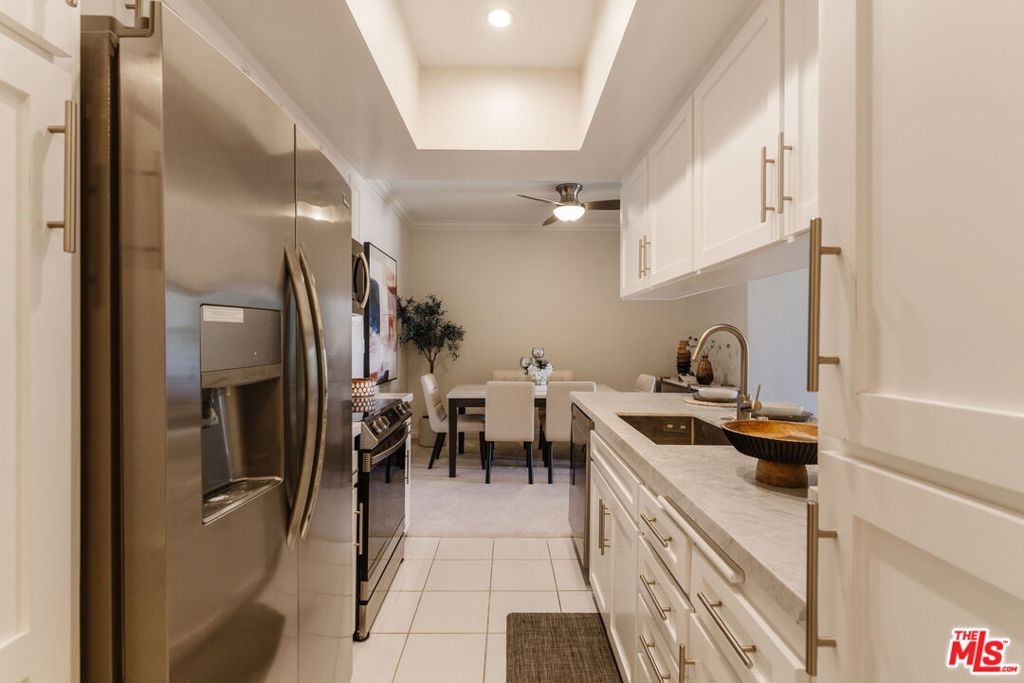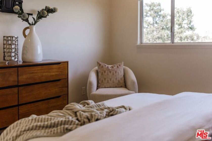 Incredible Santa Monica location just one block from the beach and moments to the shops + restaurants on popular Montana Ave. This renovated, top floor penthouse unit has it all. You're welcomed by a large, formal entry that flows into the updated kitchen showcasing beautiful Carrera marble countertops, stainless appliances, and ample cabinet space. The large dining area located just off the kitchen is perfect for entertaining and flows right into the oversized living room with adjacent dry bar. Just off the living room is a large, covered patio with tree top and mountain views in the distance. The spacious primary suite boasts a huge walk-in closet, bath with dual vanities + separate tub/shower, and large picture window. To top it off, the unit has laundry conveniently located in the hall off the bedroom. HOA dues include Earthquake Insurance and features an onsite exercise room. This unit has it all in a prime Santa Monica location to enjoy the SoCal lifestyle at its best!