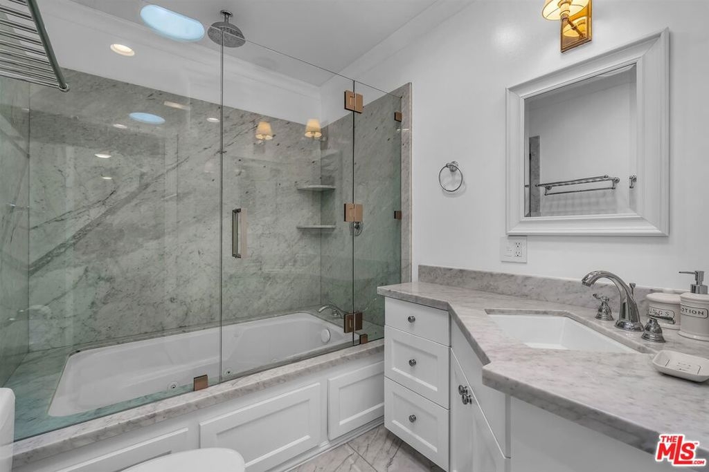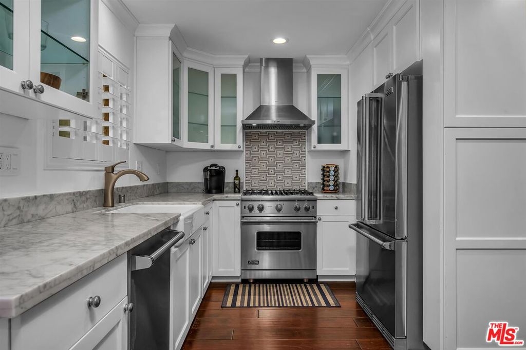 Wonderful fully remodeled two bedroom, two and half bath townhouse in the best part of Santa Monica. Located north of Montana Ave on prestigious Alta Avenue. A stone's throw from Palisades Park and walking distance to all the area has to offer. Open floor plan with peek-a-boo ocean views from the west and tree tops to the east. Quiet and cool year round. Features multiple skylights, marble kitchen and bathroom countertops, soaking tub, walk-in shower, spacious walk-in closet in primary bedroom, top of the line appliances, wine refrigerator, tons of custom cabinets and closet space. Hardwood floors throughout. Private two car garage and separate office with built-ins. Complex includes mature landscaping, fruit trees as well as a heated pool and spa.