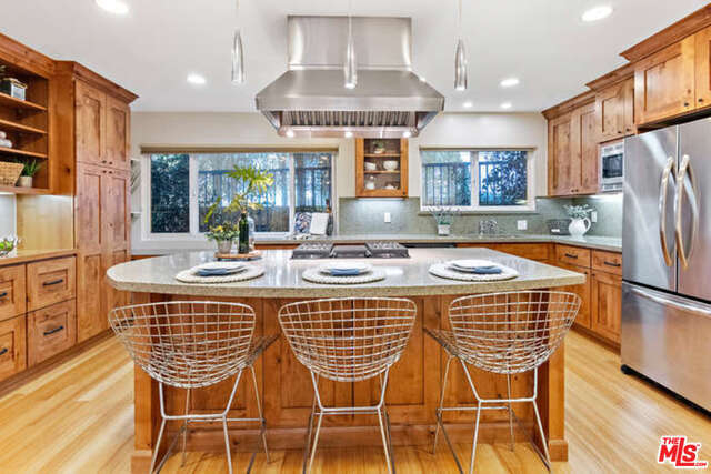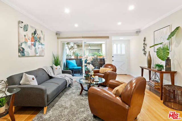 Welcome to your private oasis entering through a secure & inviting courtyard. This lovely 2bd, 2bth single level condo is located in the coveted college streets. Featuring an exquisite chef's kitchen w/ gorgeous Ceasar stone Island, range hood, designer lighting, custom cabinets, stainless steel appliances & a huge pantry/storage closet. Topping off this dream kitchen is a convenient upright lndry & built-in ofc desk. It flows nicely to the living rm that houses a classy fpl w/ mantle, sleekly designed cabinets & ample recess lighting leading to a private terrace. Bamboo wd flrs throughout & all double paned windows are equipped w/ up/dwn Hunter Douglas blinds. Both good size bdrms feature modern ceiling fans & large custom closets…1 being en-suite. The bathrooms are tastefully remodeled w/ Grohe fixtures & Ceasar stone. Close by are Sawtelle & Santa Monica Restaurants, Whole foods, Bristol Farms, Erewhon, the Metro station & the Ocean. Great location and school district.